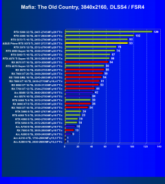 В таких играх GeForce RTX 5070 Ti уверенно занял второе место в своей группе (логично уступив GeForce RTX 5080), а объясняется это тем, что в шести из десяти тестовых игр уже имеется поддержка DLSS 4 с многокадровой генерацией (multiframe generation, MFG), что позволяет картам поколения GeForce RTX 50 сильно, иногда в разы опережать предшественников по производительности.