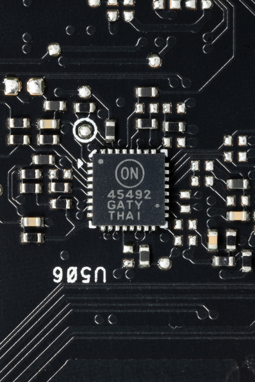 На оборотной стороны PCB имеется контроллер для мониторинга (отслеживания напряжений и температур) On Semi.