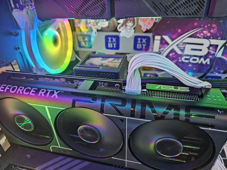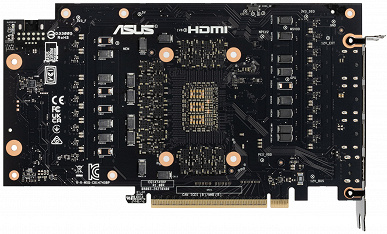Питание на карту Asus подается через 16-контактный разъем питания стандарта PCIe 5.0.