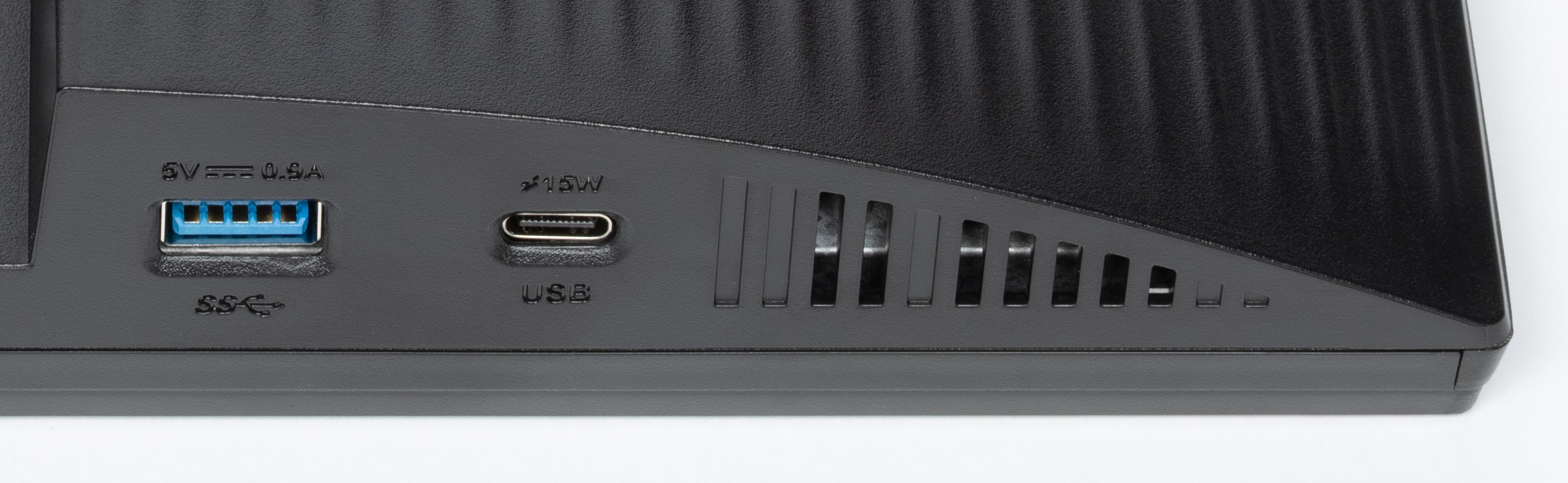 Слева на нижнем торце есть пара портов для оперативного подключения USB-устройств.