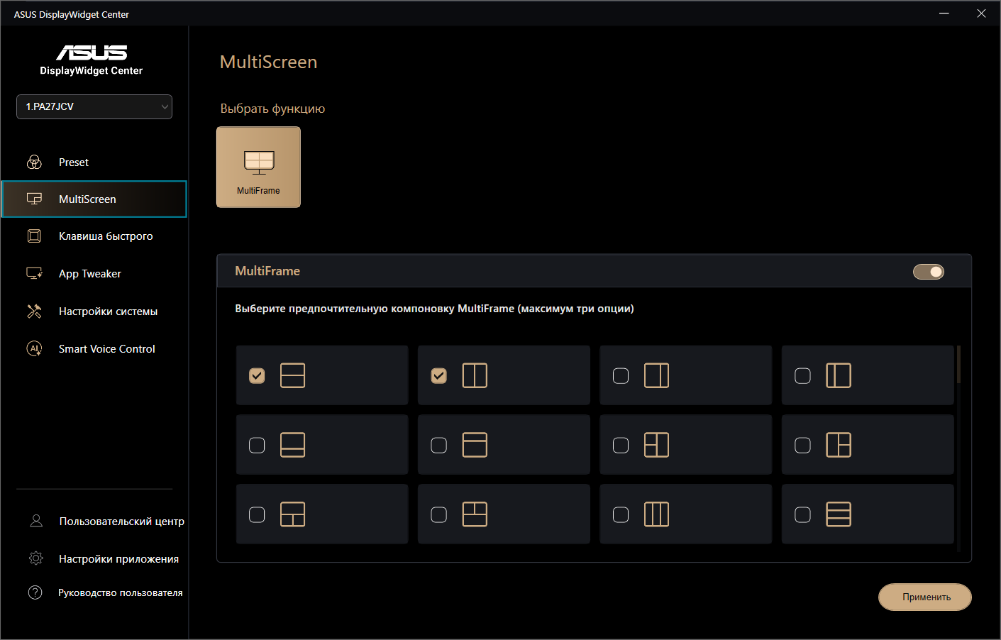 Фирменная программа Asus DisplayWidget Center позволяет настраивать монитор с компьютера и дает доступ к еще ряду полезных функций.