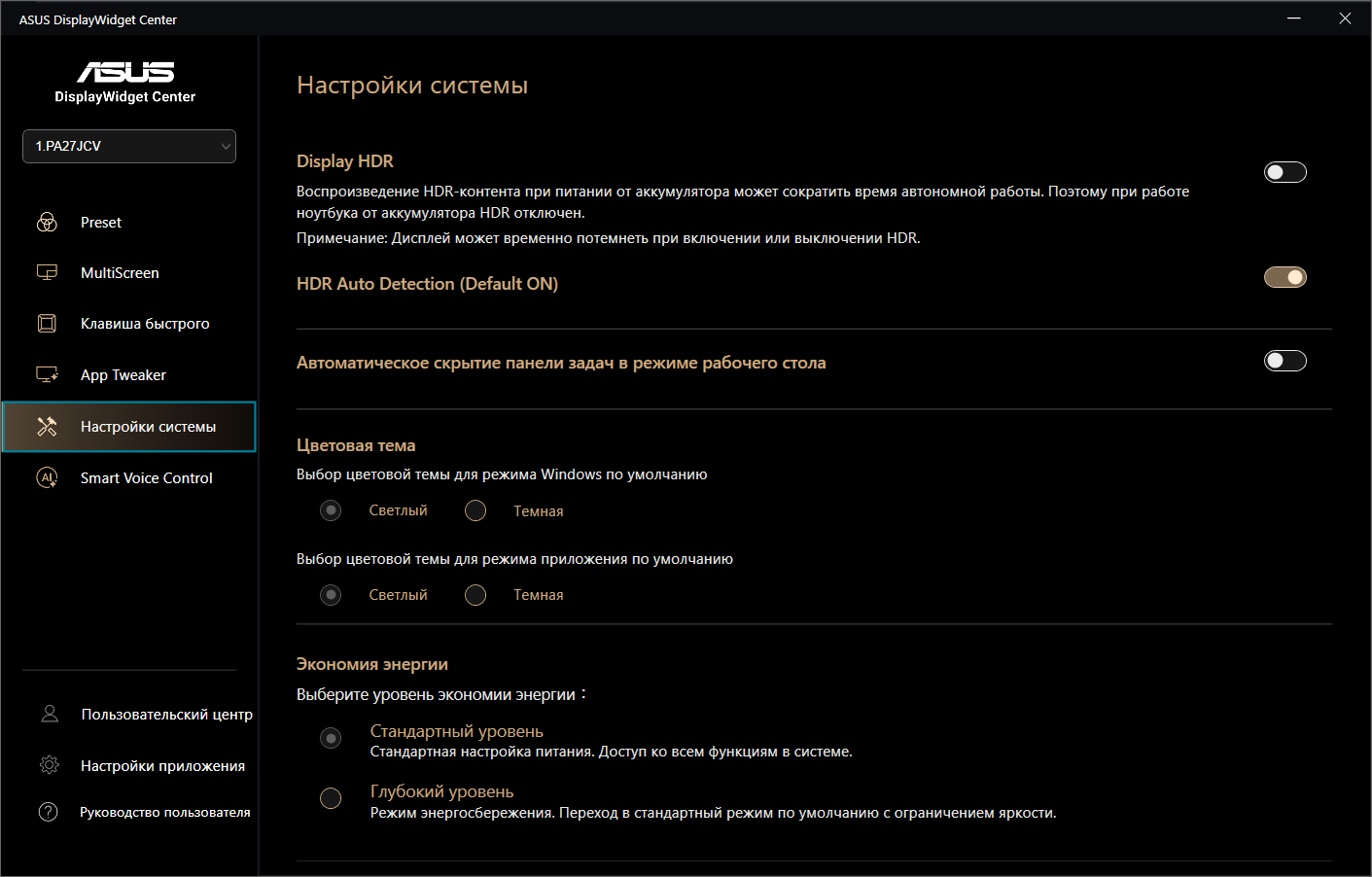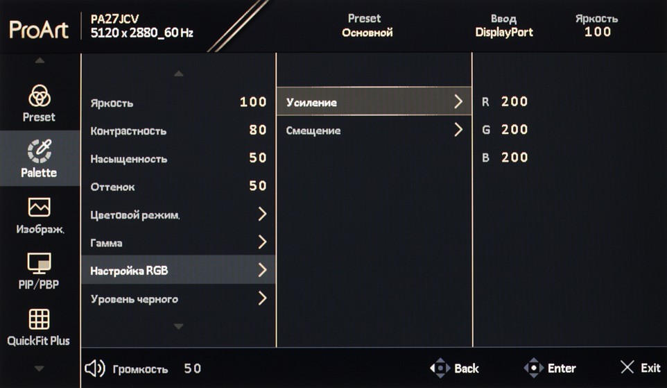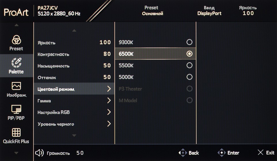 Есть несколько предустановленных профилей, притом в ряде из них часть настроек недоступны для изменения, может быть заблокирована даже регулировка яркости подсветки.