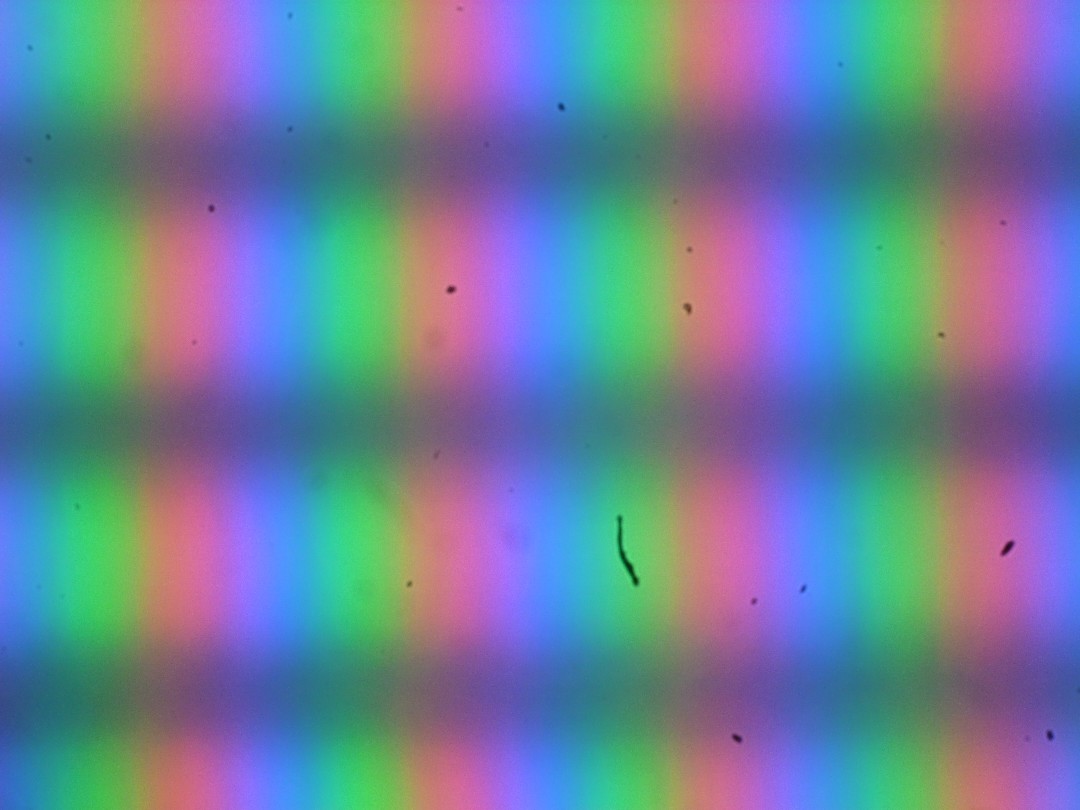 Четкое изображение структуры пикселей из-за матовой поверхности получить не удается (черные точки — это пыль на матрице фотоаппарата):