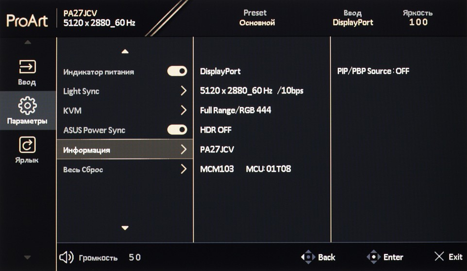 | Модель, ссылка | Asus ProArt Display PA27JCV |