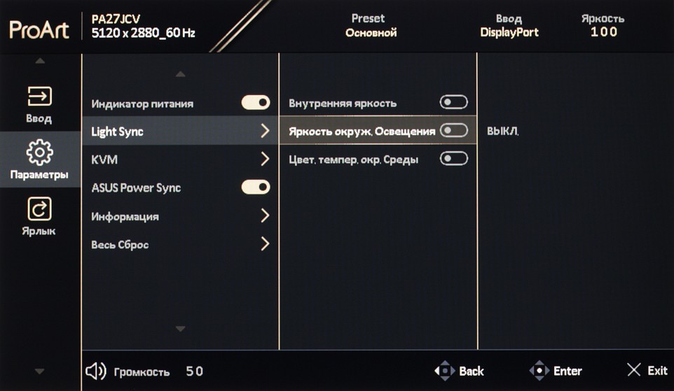 В мониторе есть функции подстройки яркости и цветового баланса экрана под условия внешней освещенности (датчик освещенности находится на фронтальной планке — не самое рациональное место).
