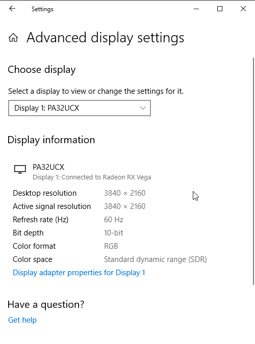 При подключении к компьютеру по DisplayPort и по HDMI поддерживалось разрешение до 3840×2160 при 60 Гц кадровой частоты. При этом по DisplayPort может передаваться 10-бит на цвет, а по HDMI — только 8-бит на цвет.