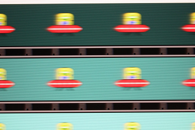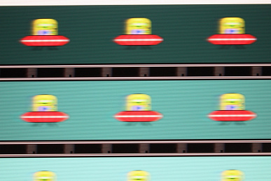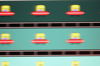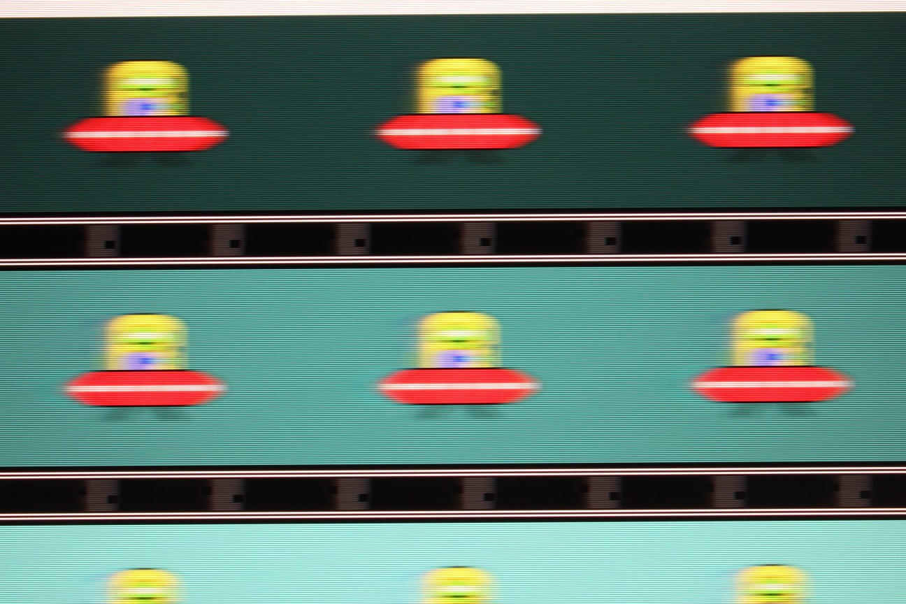Для наглядного представления о том, что на практике означает такая скорость матрицы, какие могут быть артефакты от разгона и повышает ли четкость в движении, описанная выше настройка Motion Sync, приведем серию снимков, полученных с помощью движущейся камеры. Такие снимки показывают, что видит человек, если он следит глазами за двигающимся на экране объектом. Описание теста приведено тут, страница с самим тестом тут. Использовались рекомендованные установки (скорость движения 960 пиксель/с), выдержка 1/15 с, под фотографиями указаны значения настроек Trace Free и Motion Sync.
