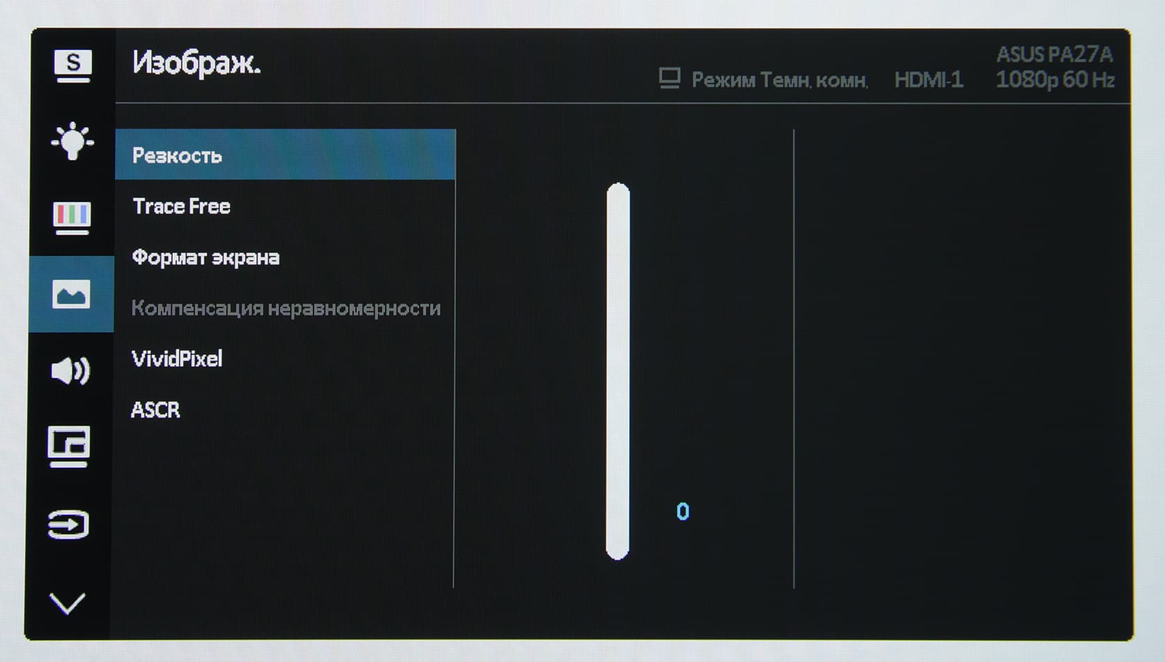 При включенном режиме ASCR включается динамическое управление яркостью (яркость повышается для светлых сцен и понижается для темных). Режим Eco Mode — это понижение яркости для экономии энергии. VividPixel — функция продвинутого масштабирования к разрешению матрицы. Есть и режим Компенсация неравномерности, при выборе которого должна уменьшаться неравномерность яркости и цветового тона по площади экрана.