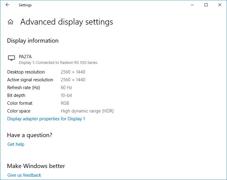 Под Windows 10 вывод в режиме HDR на данный монитор возможен как на системном уровне при выборе соответствующих опций в настройках, так и при воспроизведении в видеоплеере в полнооконном режиме с помощью видеорендерера madVR независимо от настроек ОС.
