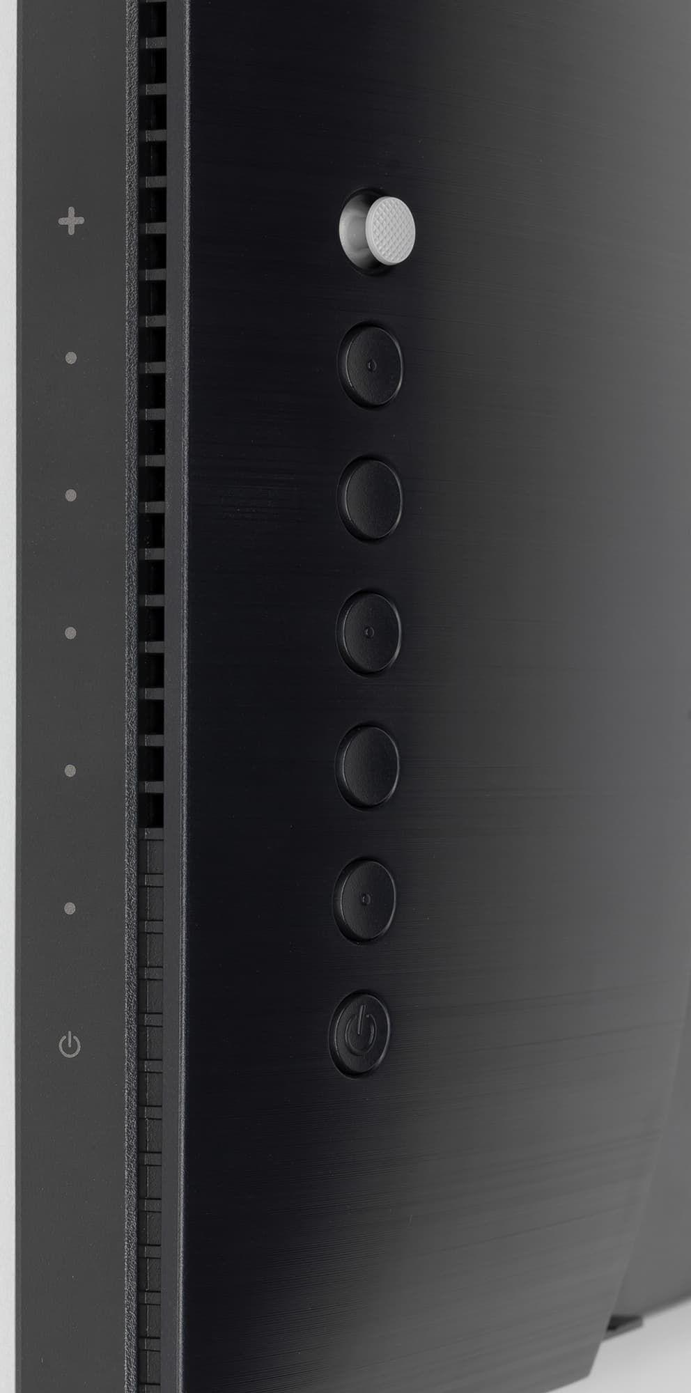 В правой нижней части задней панели очень близко к правому торцу вертикально в ряд расположены 5-позиционный джойстик и еще шесть механических кнопок управления. Различать кнопки на ощупь помогают выпуклые точки на трех кнопках и выпуклый значок питания на соответствующей кнопке. На боковой грани окантовки напротив кнопок нанесены неконтрастные значки.