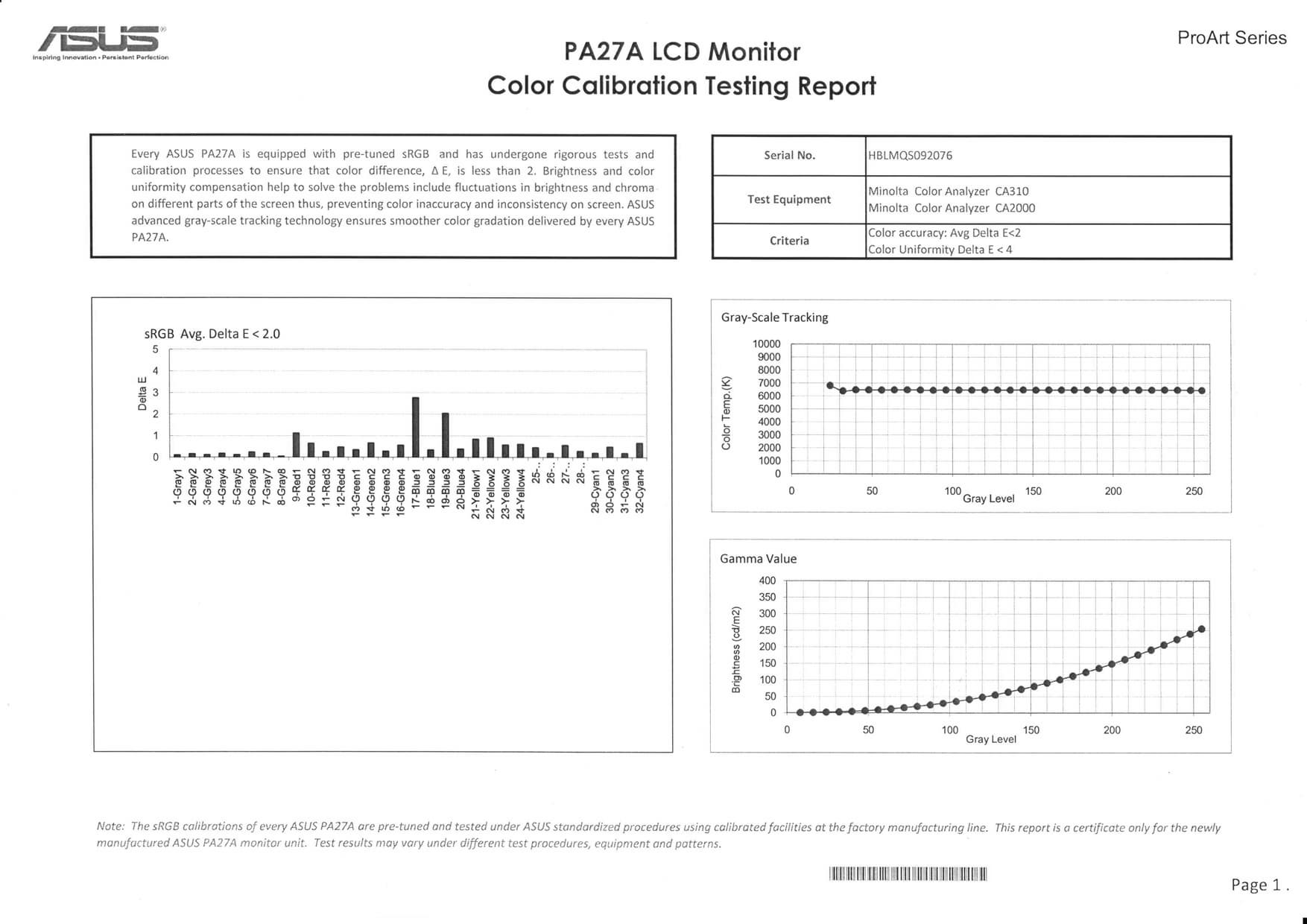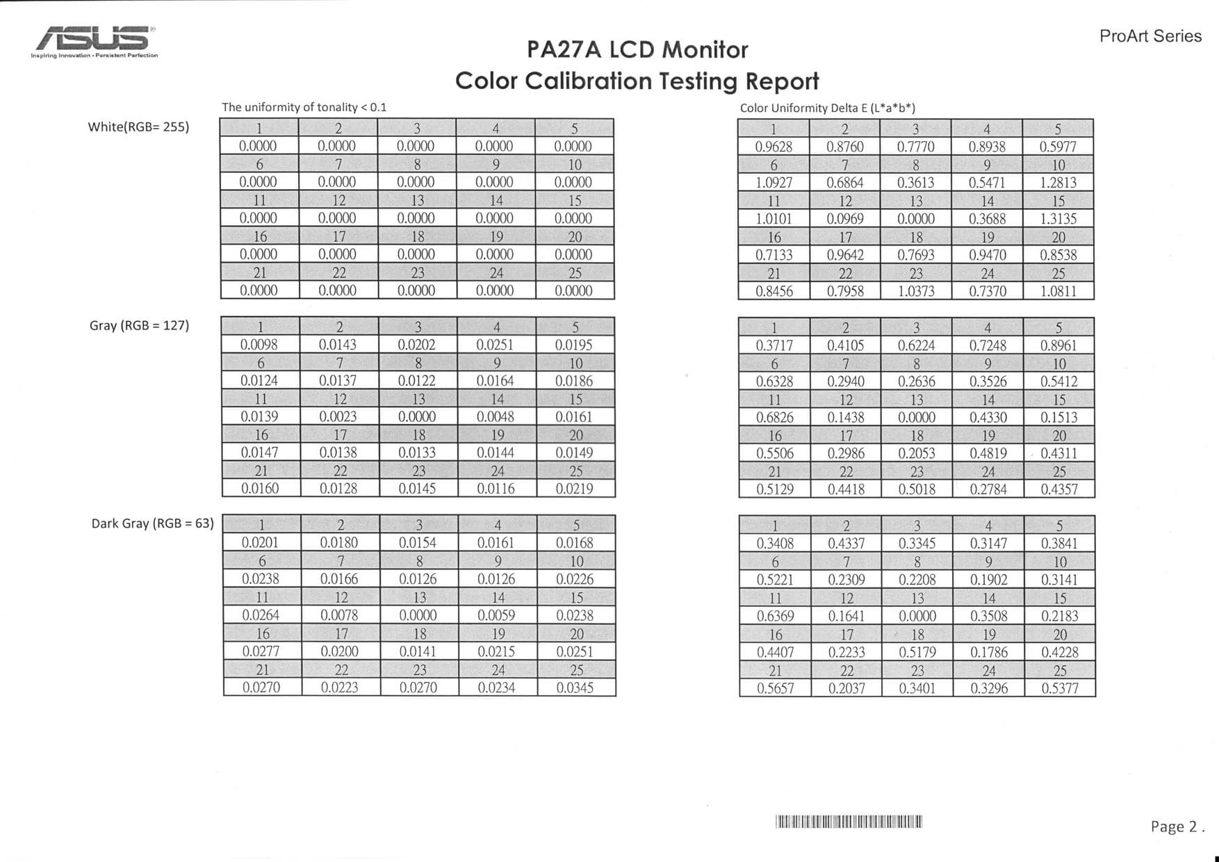 К монитору, к каждому конкретному экземпляру прилагается свой отчет о качестве цветового баланса, включая равномерность по площади: