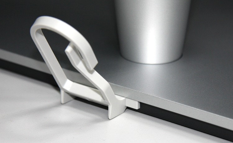 Нишу с разъемами можно закрыть входящей в комплект пластиковой кабельной крышкой. Отходящие кабели можно пропустить через крюк-скобу, закрепляемую сзади на основании подставки.