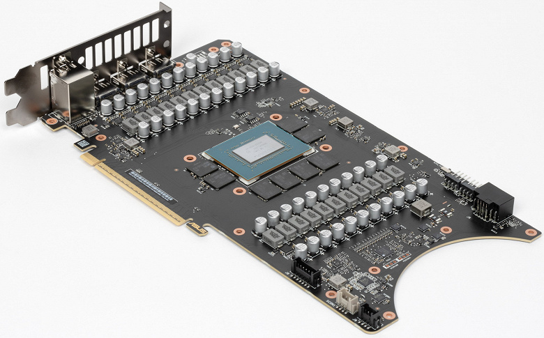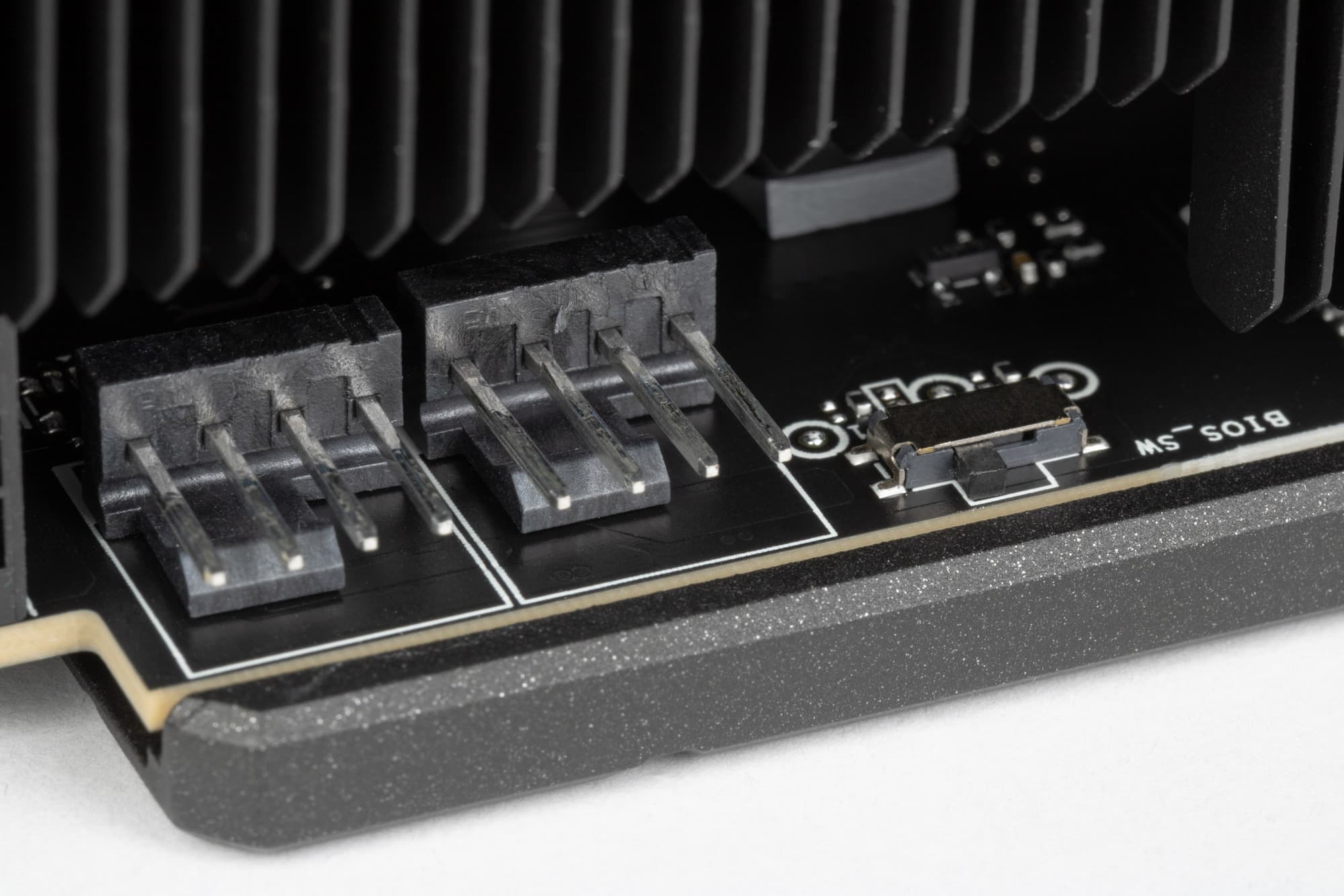 Питание на карту Asus подается через 16-контактный разъем питания стандарта PCIe 5.0.