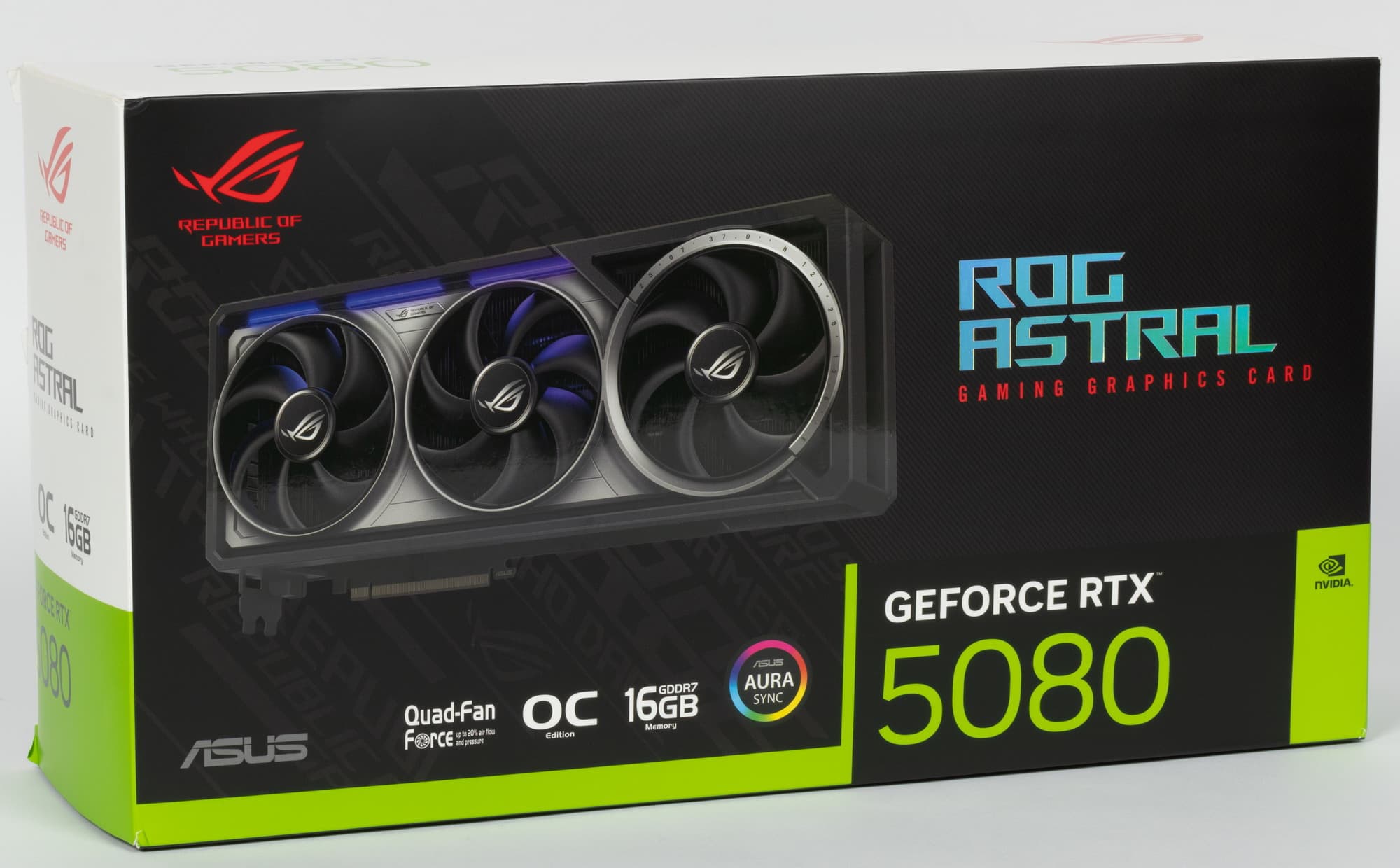 Asus ROG Astral GeForce RTX 5080 OC (16 ГБ) — флагманский вариант ускорителя на базе GeForce RTX 5080, второго после GeForce RTX 5090 в нынешней табели о рангах у Nvidia.