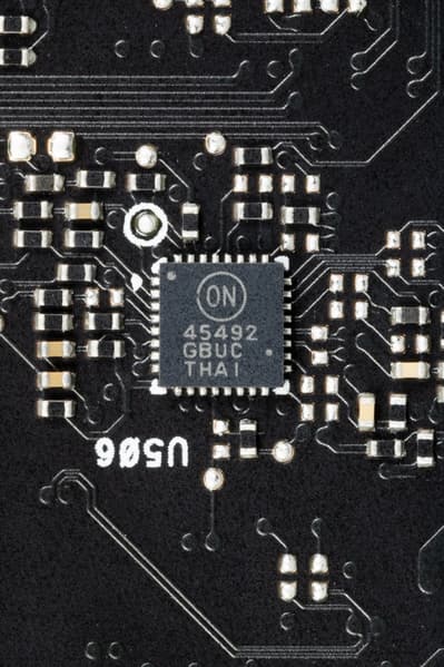 На оборотной стороны PCB имеется контроллер для мониторинга (отслеживания напряжений и температур) On Semi.
