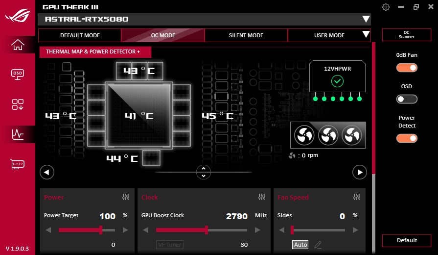 Карта оснащена тремя контроллерами напряжения и тока от Texas Instruments, каждый из которых имеет светодиод-индикатор, предупреждающий о наличии каких-либо проблем с питанием. Более того, информацию от этих контроллеров использует фирменная утилита Asus GPU Tweak III, которая сможет известить пользователя о проблемах.