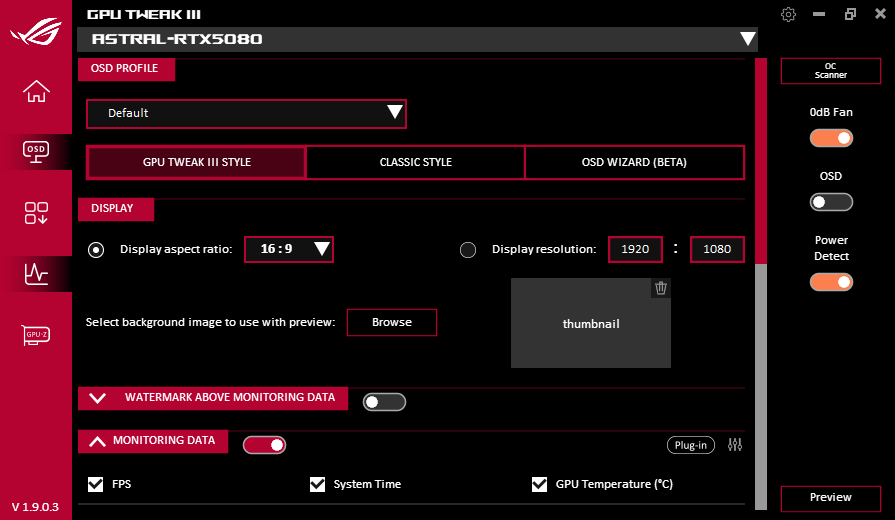 Управление работой карты обеспечивается с помощью фирменной программы Asus GPU Tweak III, мы о ней уже много раз писали: программа предоставляет управление вентиляторами, частотами работы карты и напряжением ядра, слежение за состоянием карты (мониторинг) и многое иное.