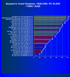 С учетом относительной новизны GeForce RTX 5080, а также приличного дефицита таких карт их цены по-прежнему сильно завышены (напомним, что рекомендованная цена Nvidia — 1000 долларов). К тому же, большинство продвинутых пользователей, отдавших огромные деньги за такую видеокарту для игр, при наличии поддержки RT и/или технологий динамического масштабирования в игре обязательно будут использовать эти технологии, так что сейчас обращать внимание на этот рейтинг, наверное, не имеет смысла.