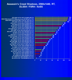 Результаты тестов со включенной аппаратной трассировкой лучей и/или DLSS/FSR/XeSS в разрешениях 1920×1080, 2560×1440 и 3840×2160
