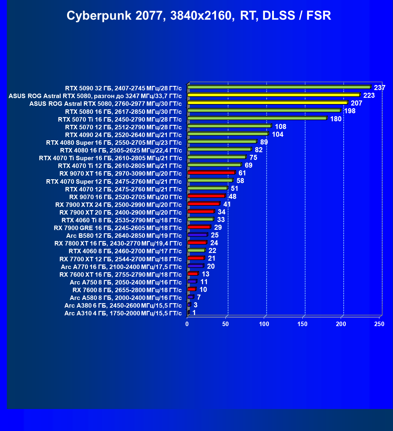 | 25 | Asus ROG Astral RTX 5080, разгон до 3247 МГц/33,7 ГТ/с | 341 | 6132 | 180 000 |