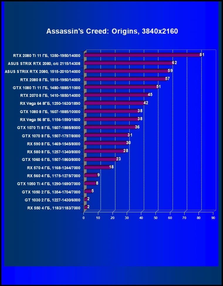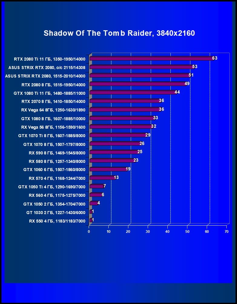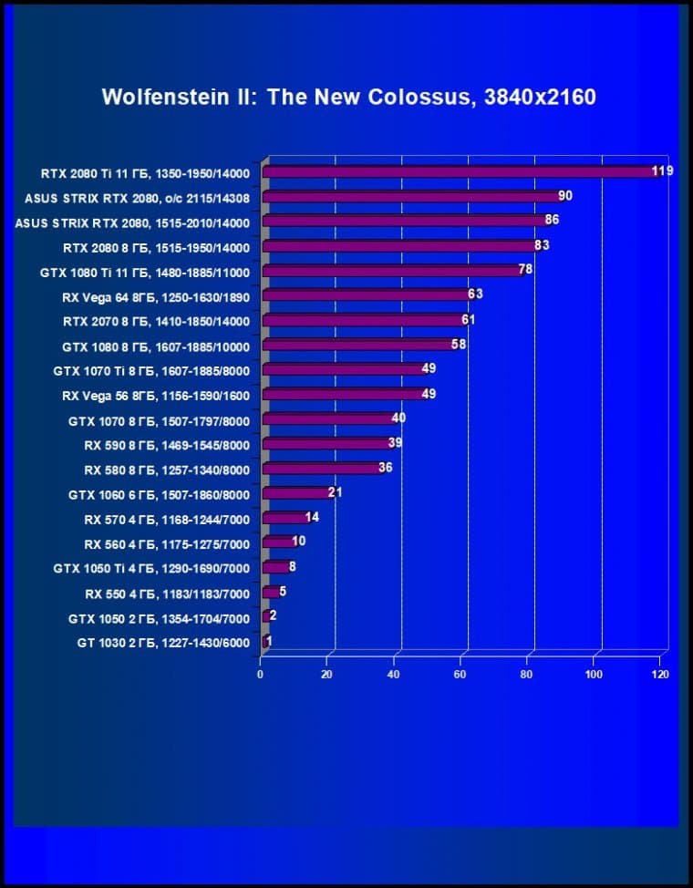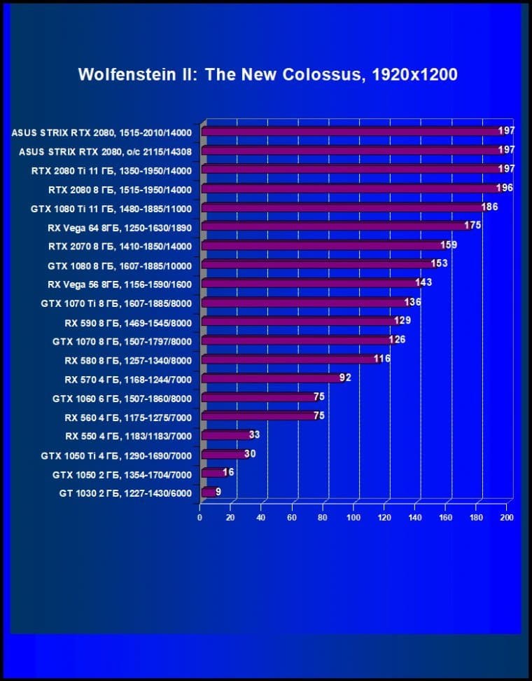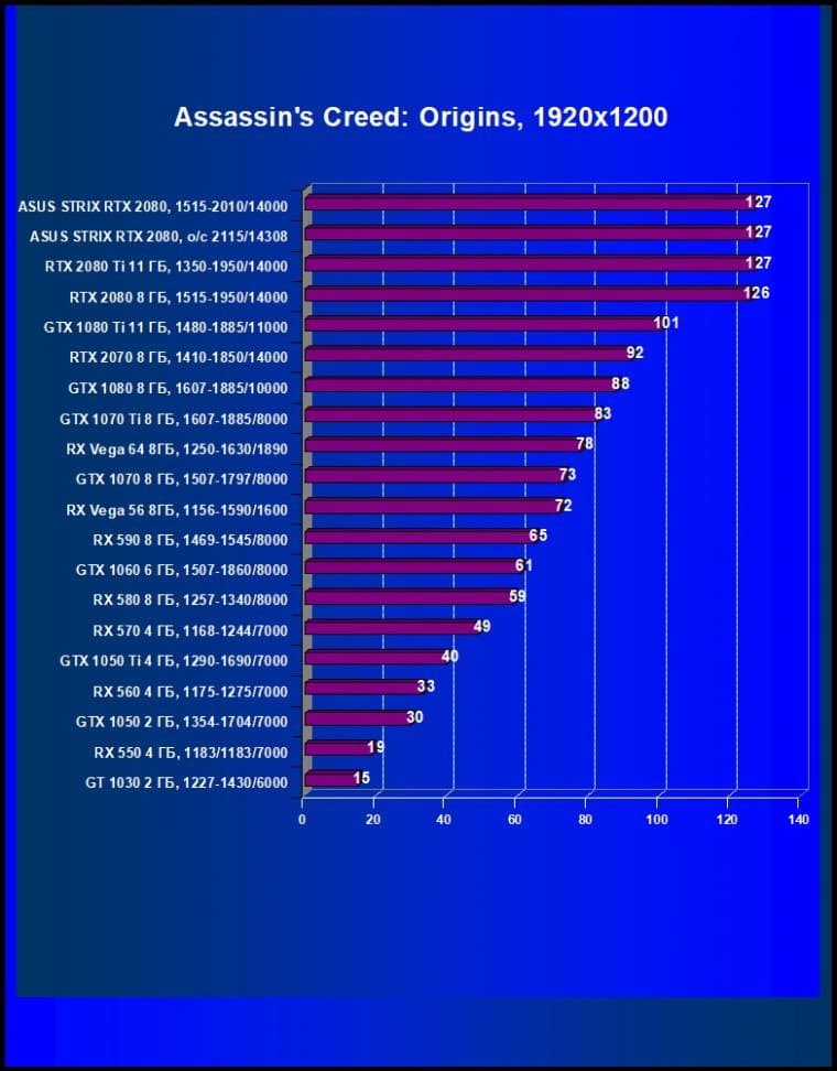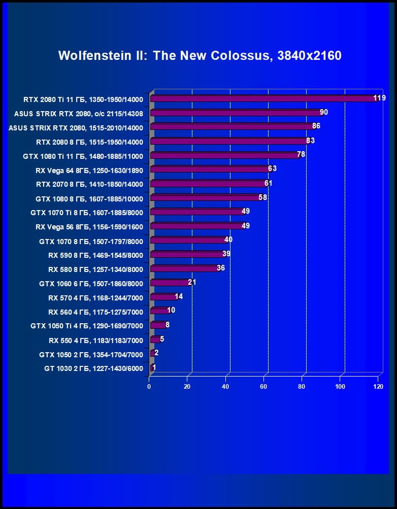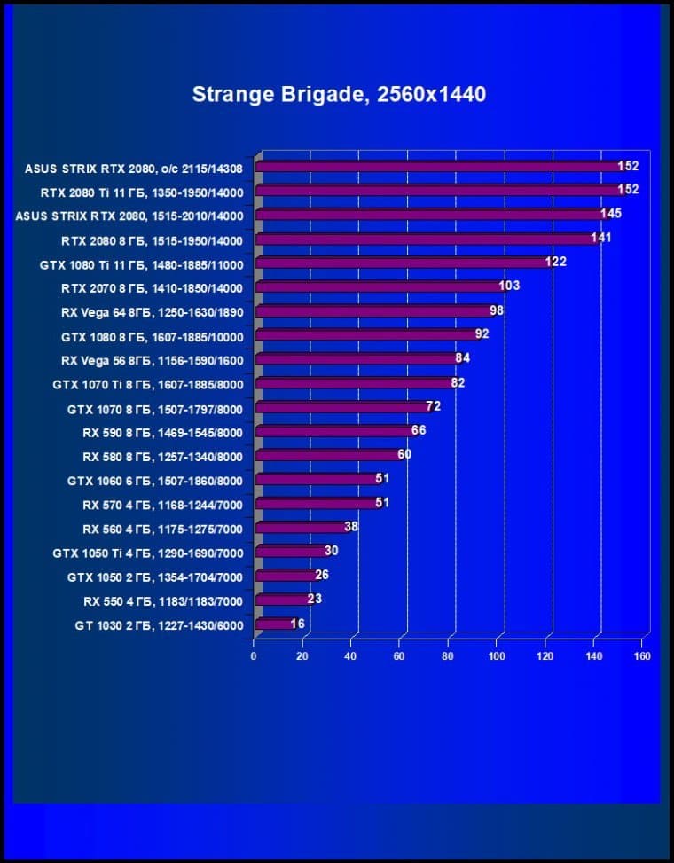 | 11 | Asus Strix RTX 2080, 1515—2010/14000 (OC mode) | 238 | 1536 | 64 500 |