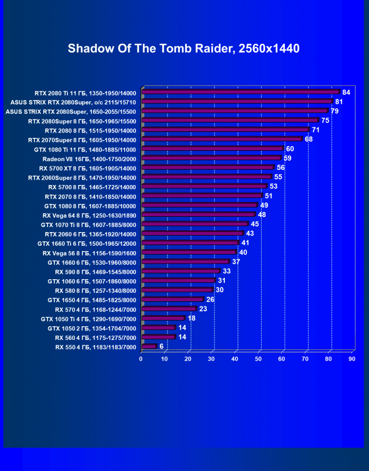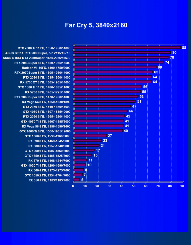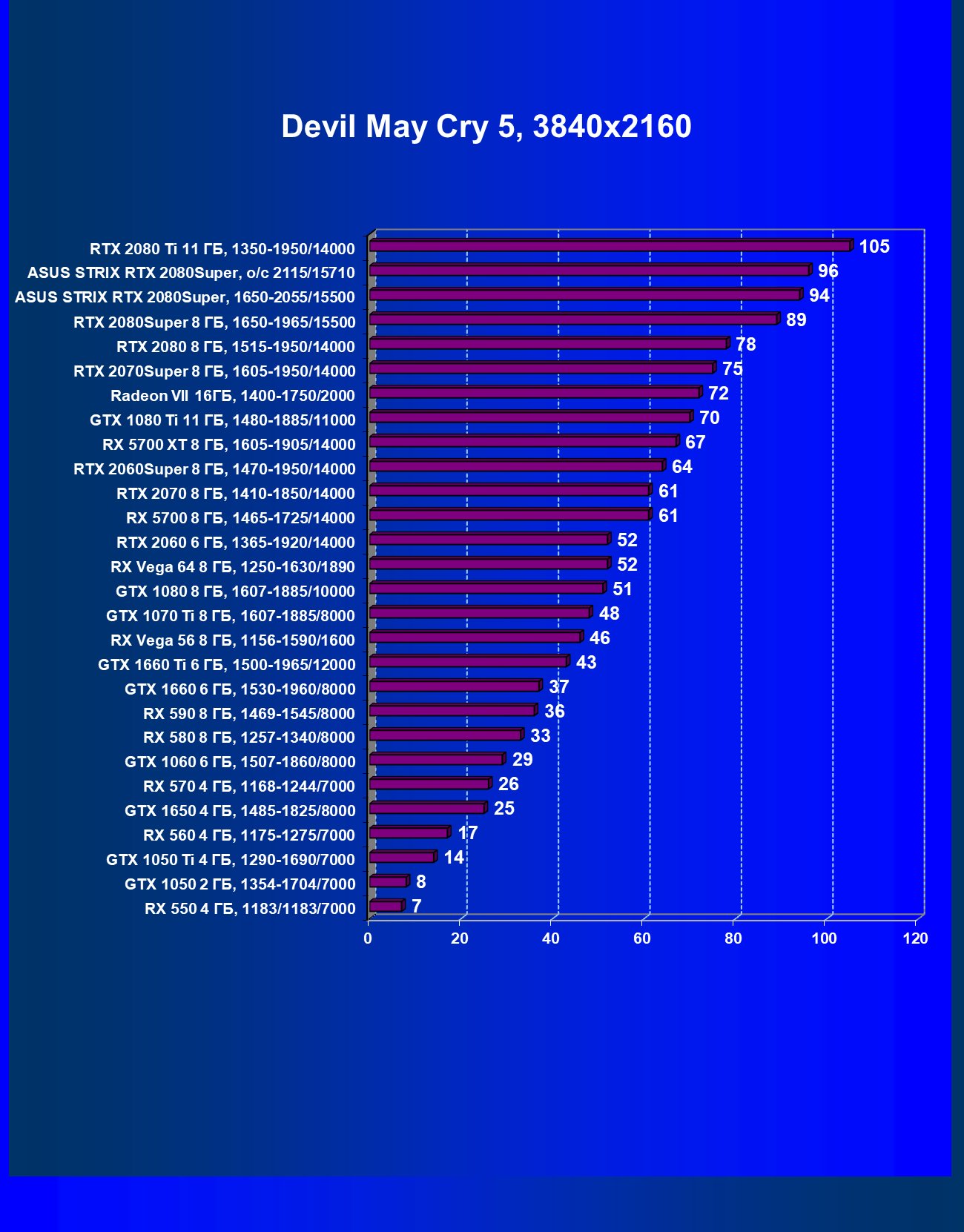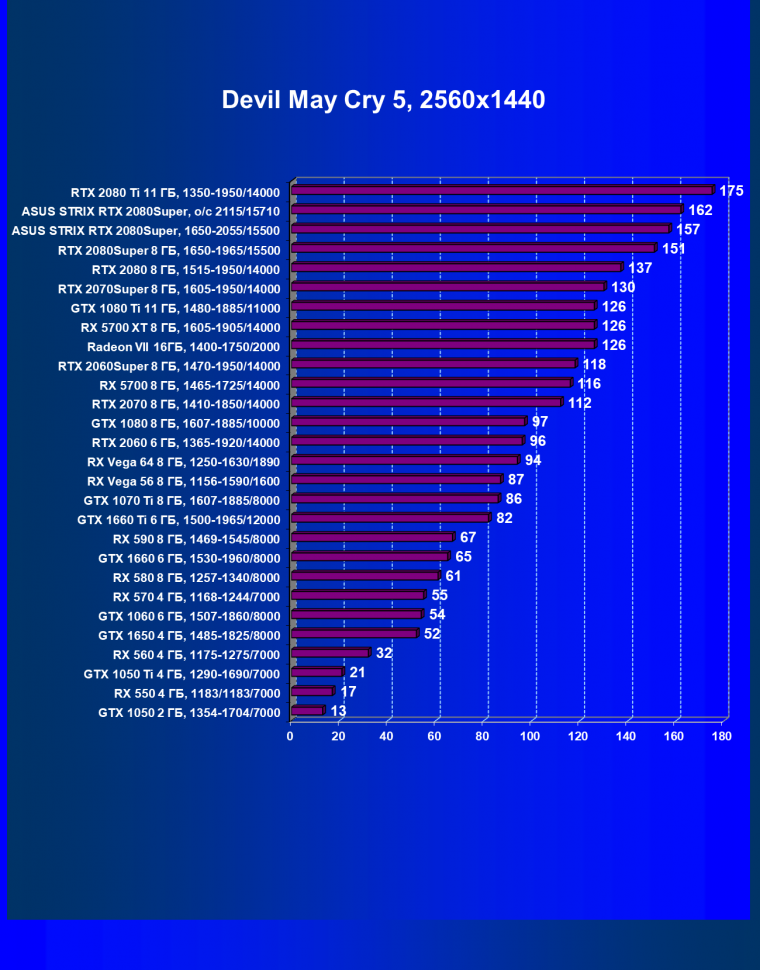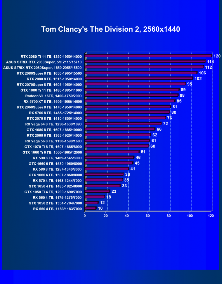 | 11 | Asus Strix RTX 2080 Super, 1650—2055/15500 | 369 | 2103 | 57 000 |