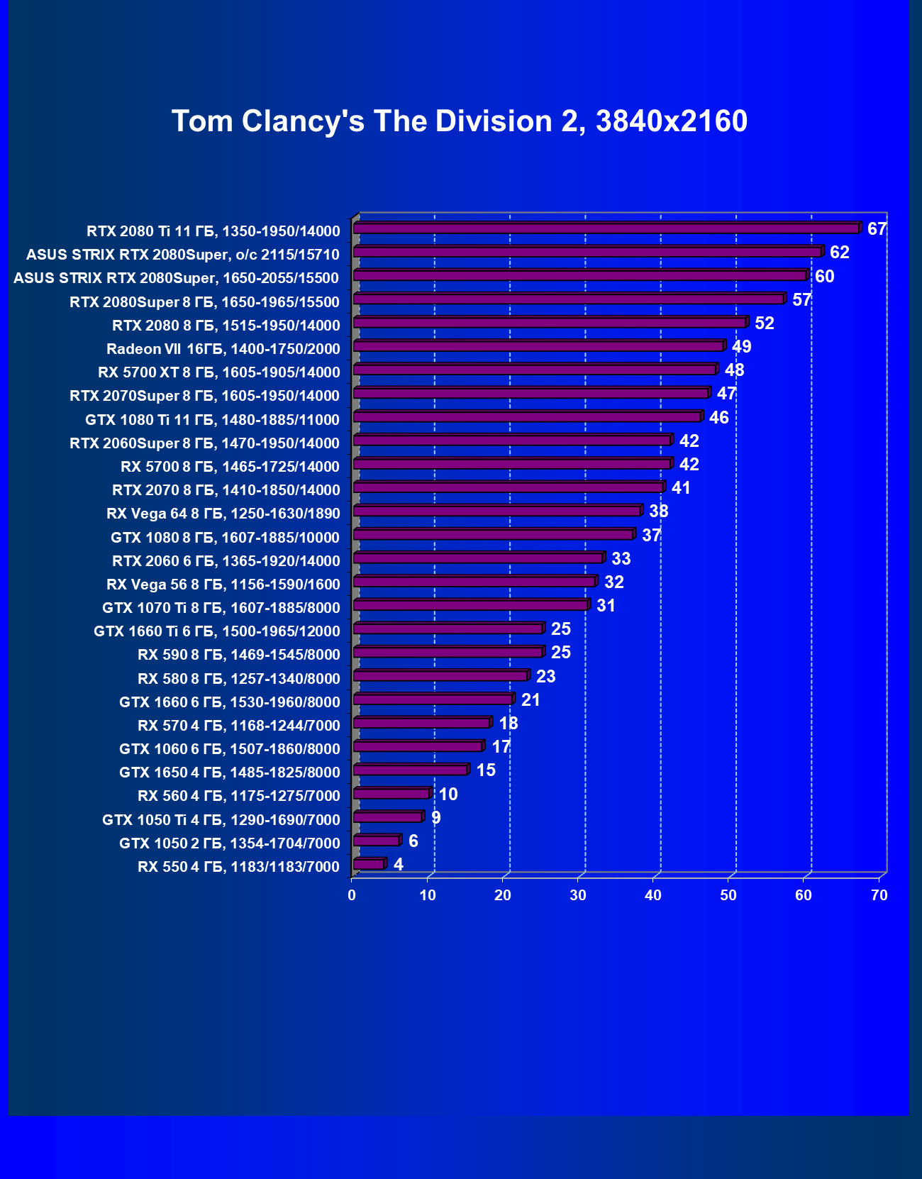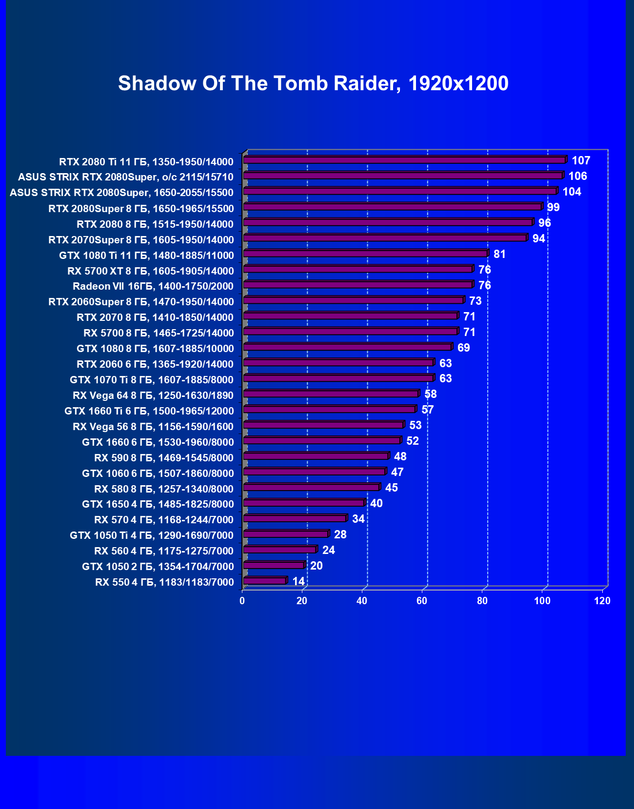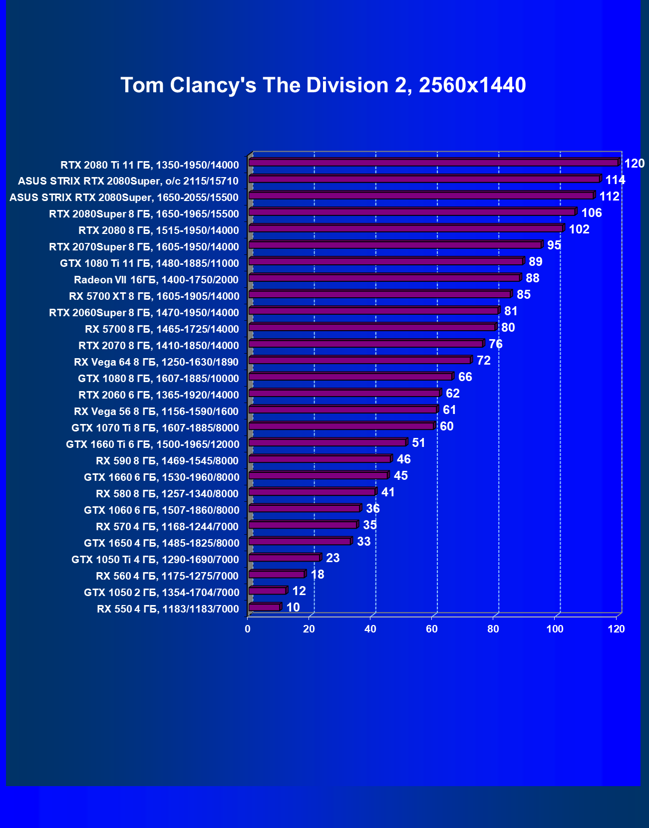 | 11 | Asus Strix RTX 2080 Super, 1650—2055/15500 | 369 | 2103 | 57 000 |
