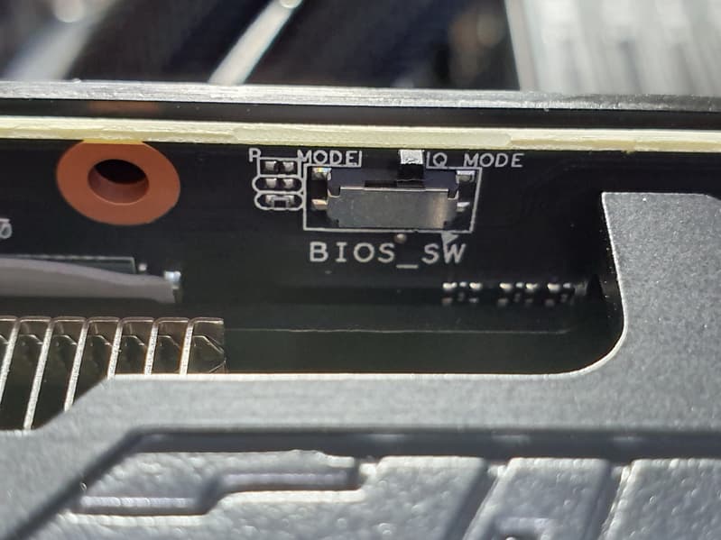Карта имеет две копии BIOS, переключаться между которыми можно с помощью торцевого переключателя (его работу видно в начальном ролике). По частотам обе версии BIOS совершенно одинаковы, однако BIOS 2 позволяет вентиляторам останавливаться при малой нагрузке на ускоритель (детально мы это обсудим чуть ниже).