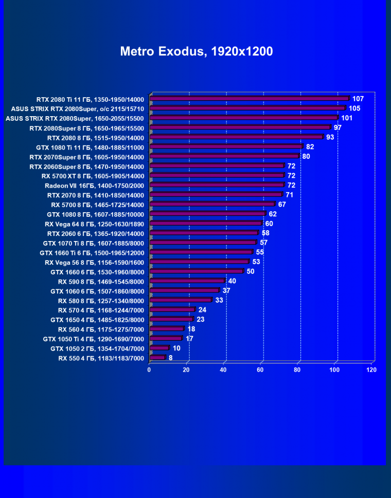 | 03 | Asus Strix RTX 2080 Super, 1650—2055/15500 | 1130 | 198 | 57 000 |