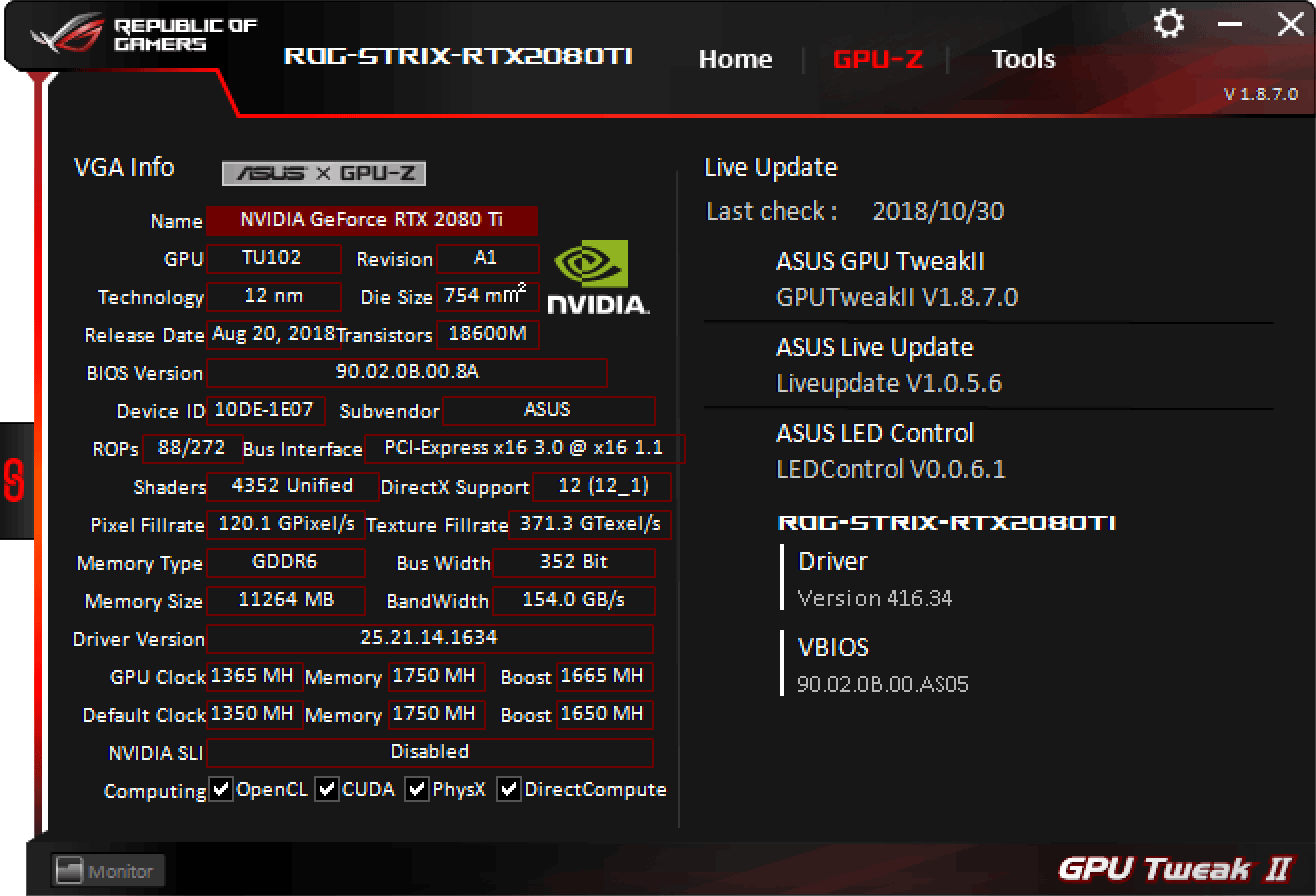 | Asus ROG Strix GeForce RTX 2080 Ti OC Edition 11 ГБ 352-битной GDDR6 | ||
