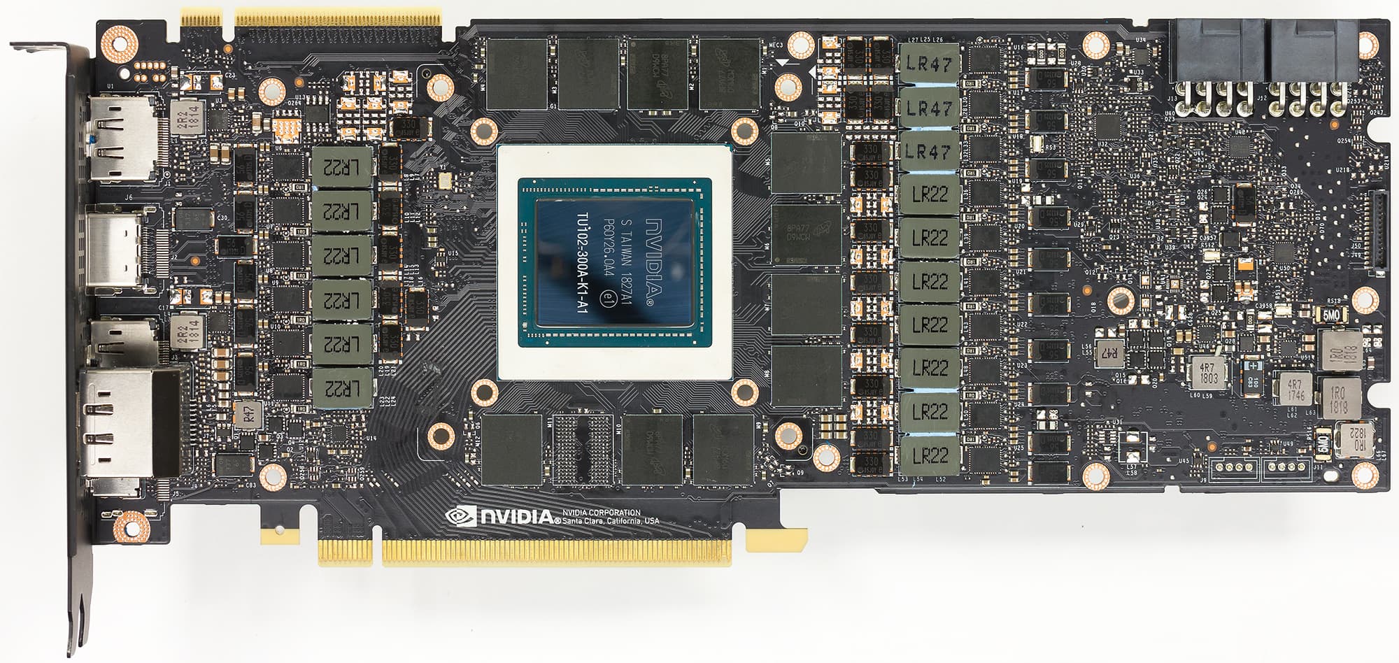 Еще следует отметить, что карта оснащается новым разъемом USB-C (VirtualLink) специально для работы с устройствами виртуальной реальности следующего поколения. Да и набор видеовыходов чуть поменялся: традиционные 3 разъема DisplayPort + 1 HDMI сменились на паритетные 2+2.