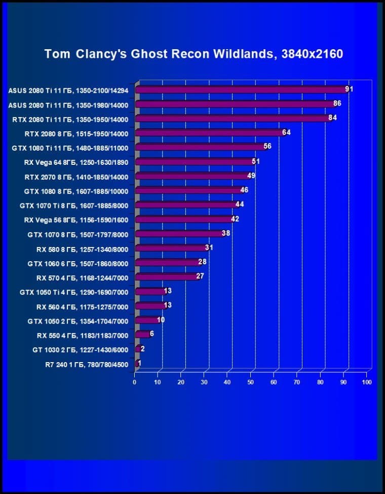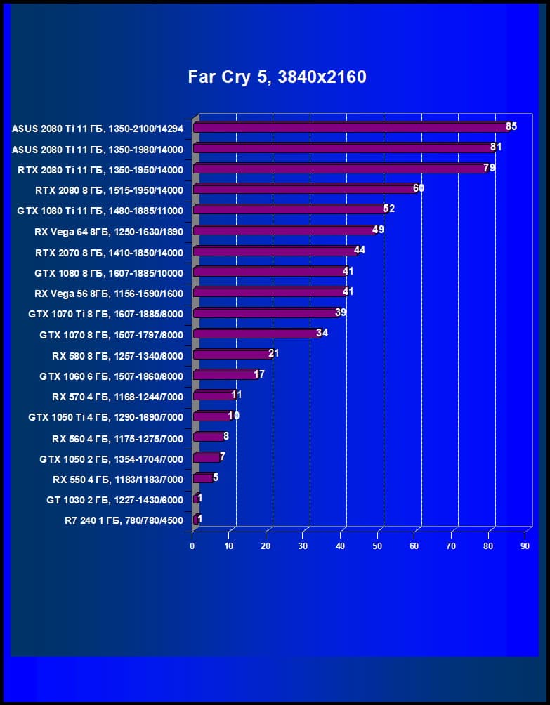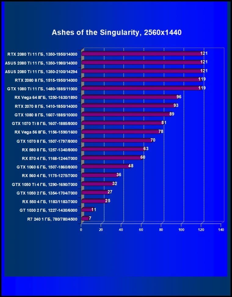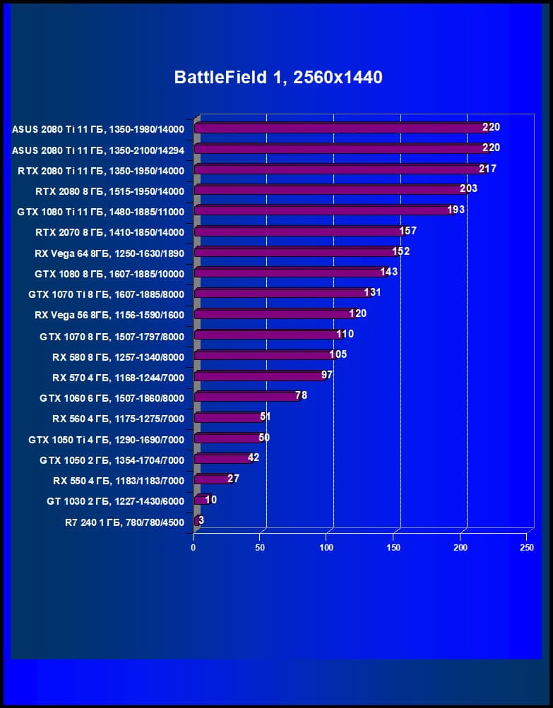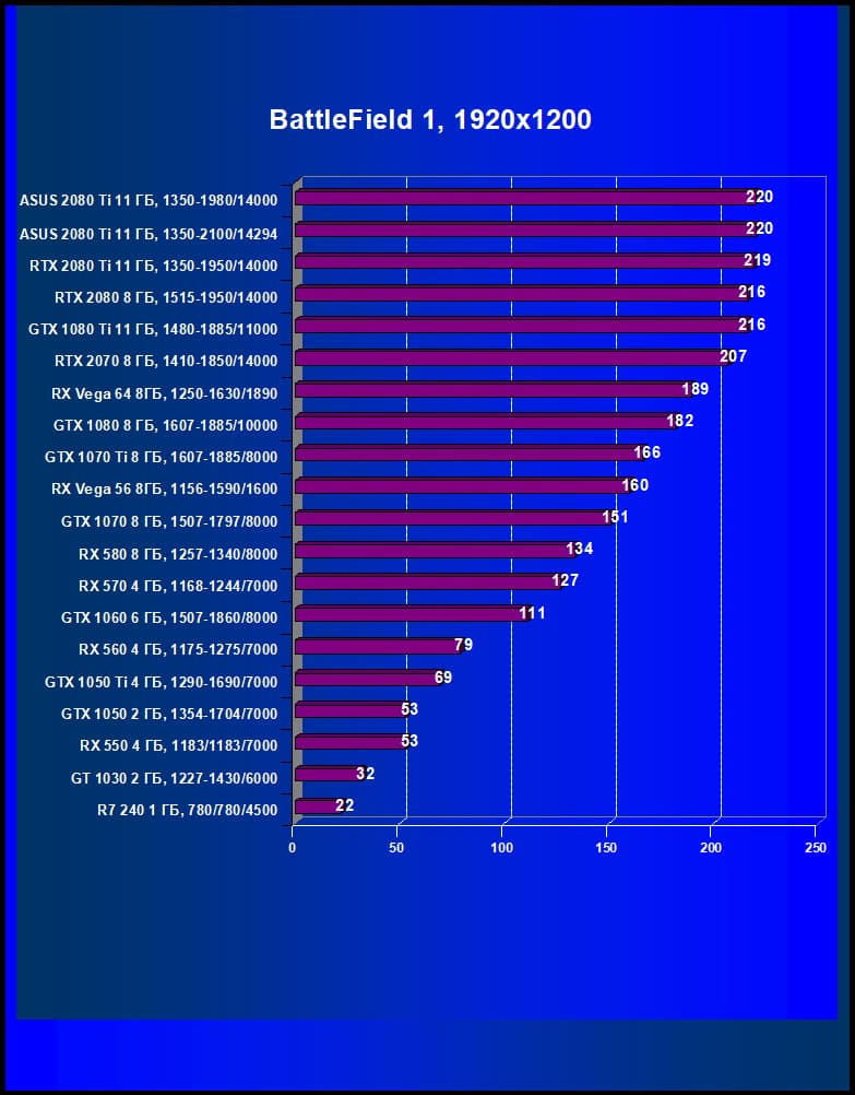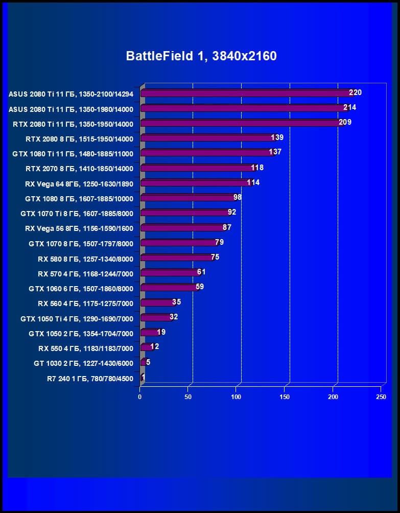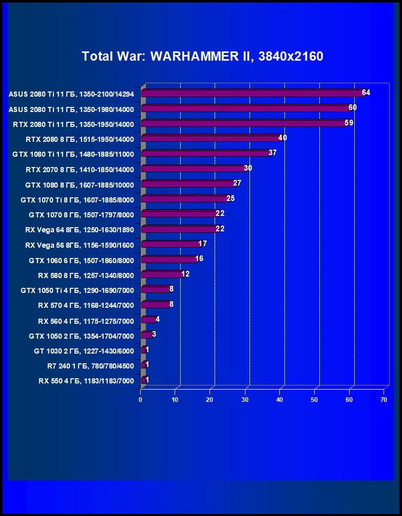 Возвращаясь к результатам RTX 2080 Ti, отметим, что соперники логично отстают: GTX 1080 Ti — второй, а RX Vega 64 — на третьем месте.