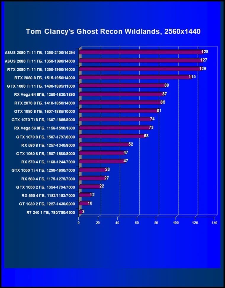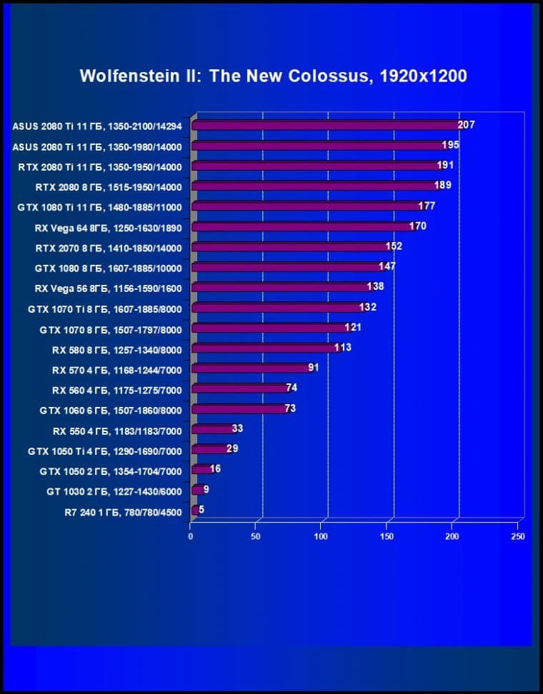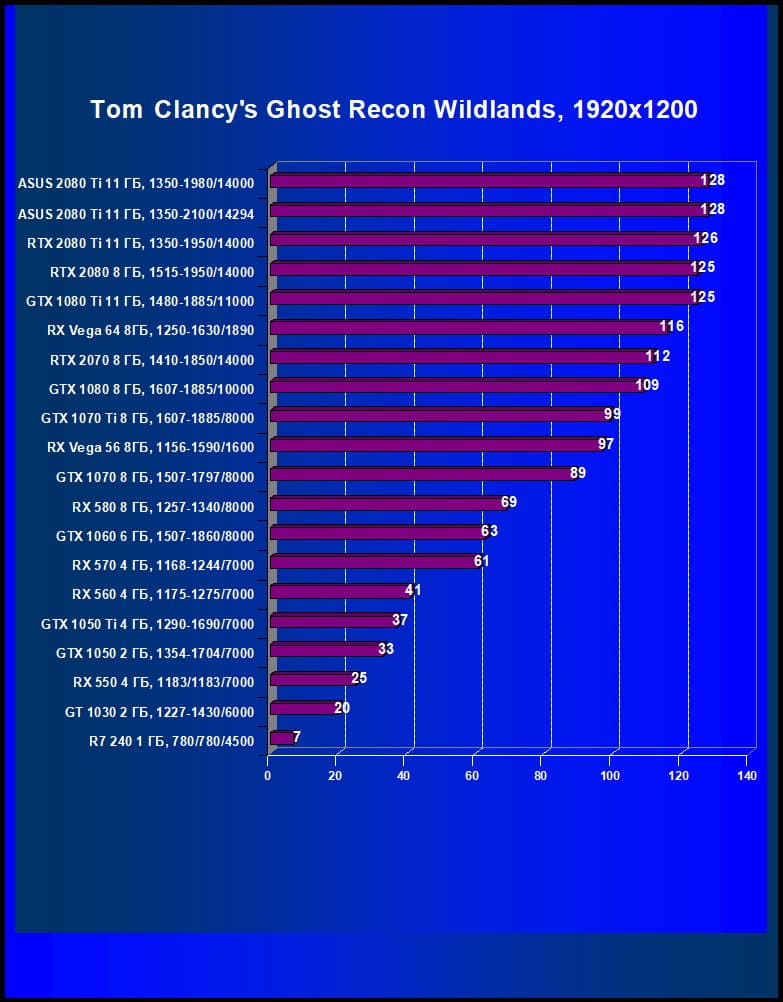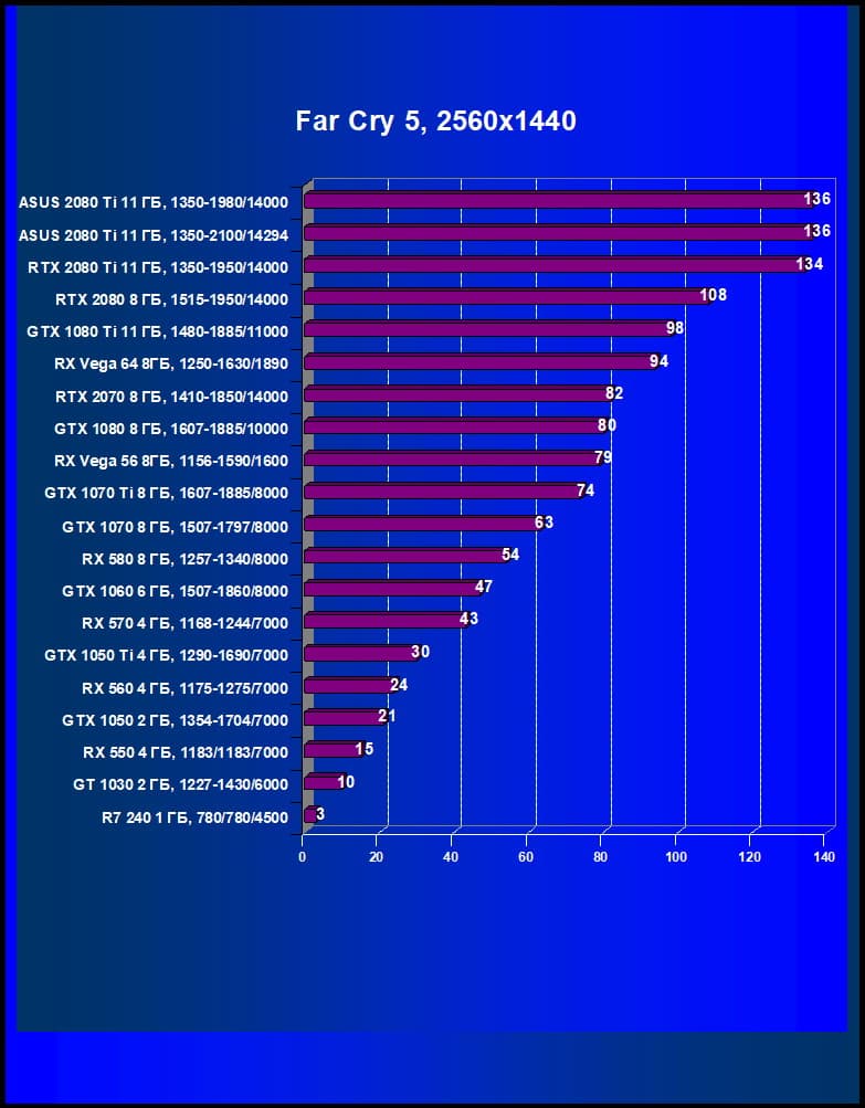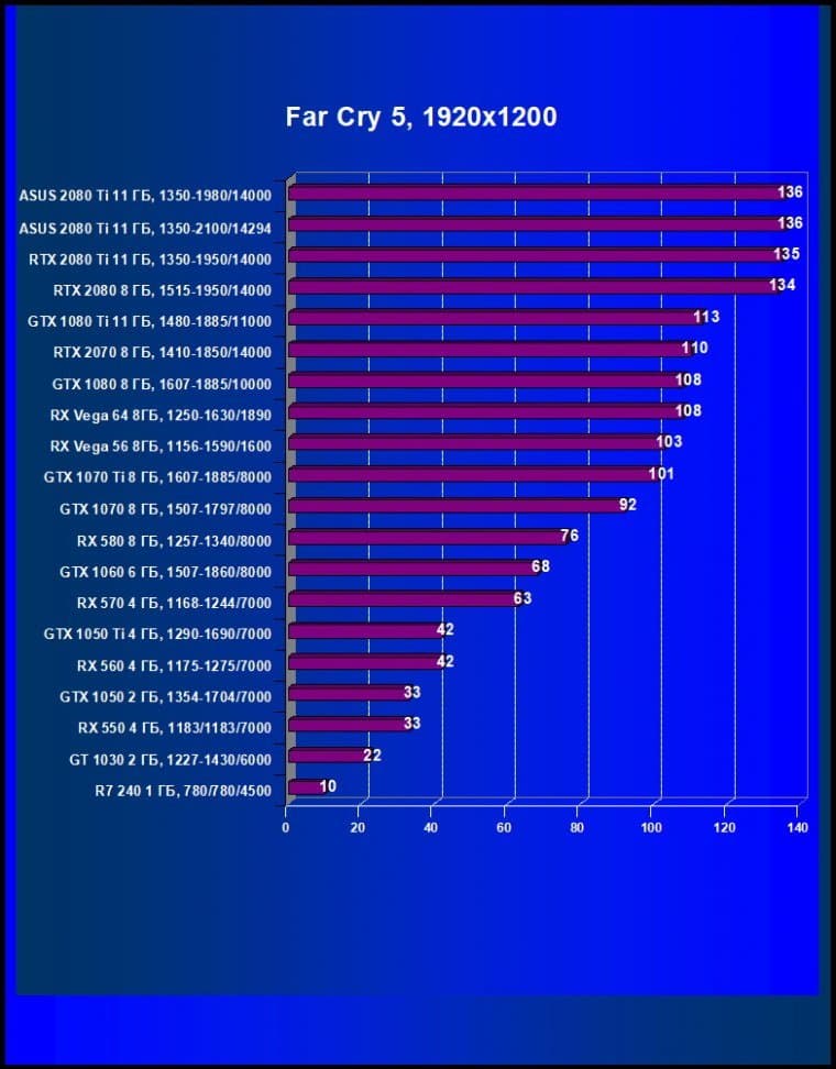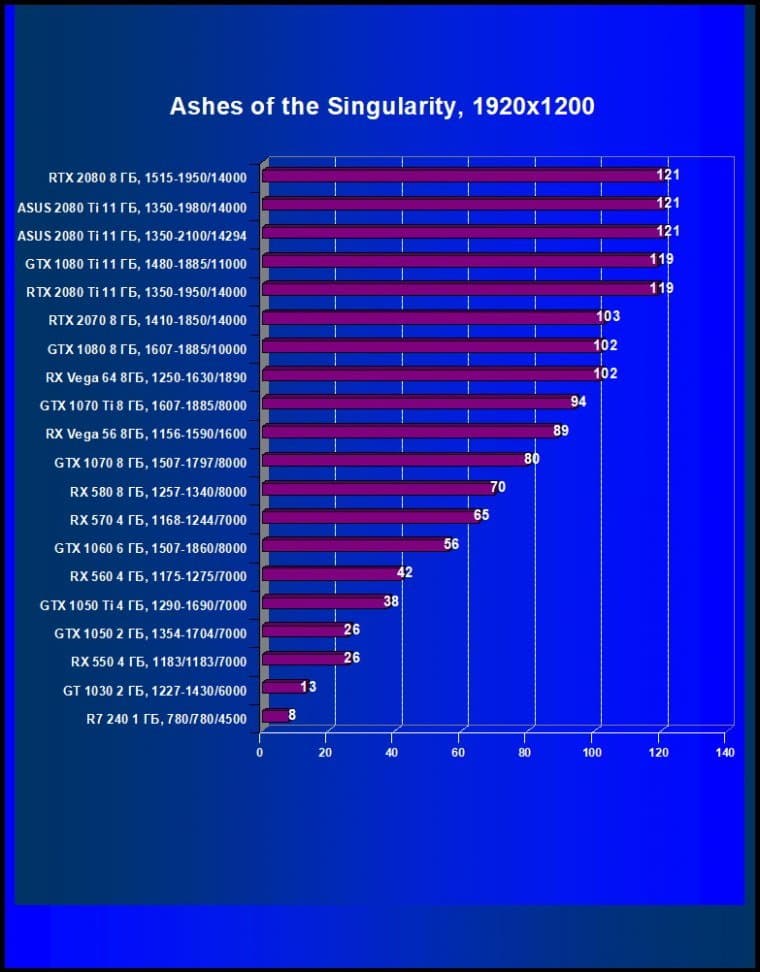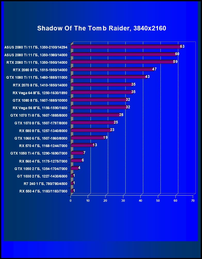 Возвращаясь к результатам RTX 2080 Ti, отметим, что соперники логично отстают: GTX 1080 Ti — второй, а RX Vega 64 — на третьем месте.