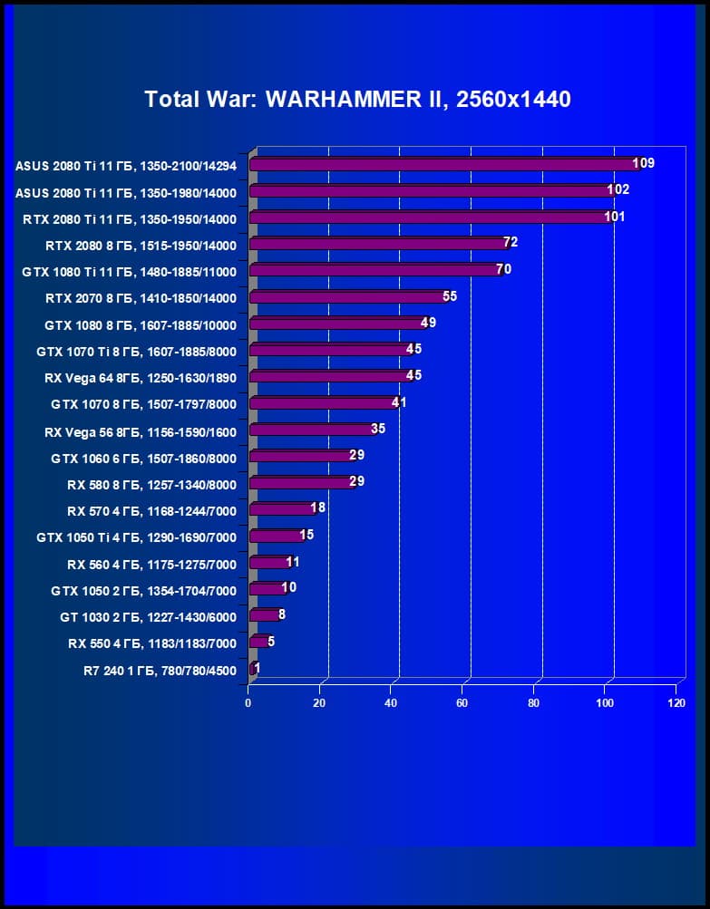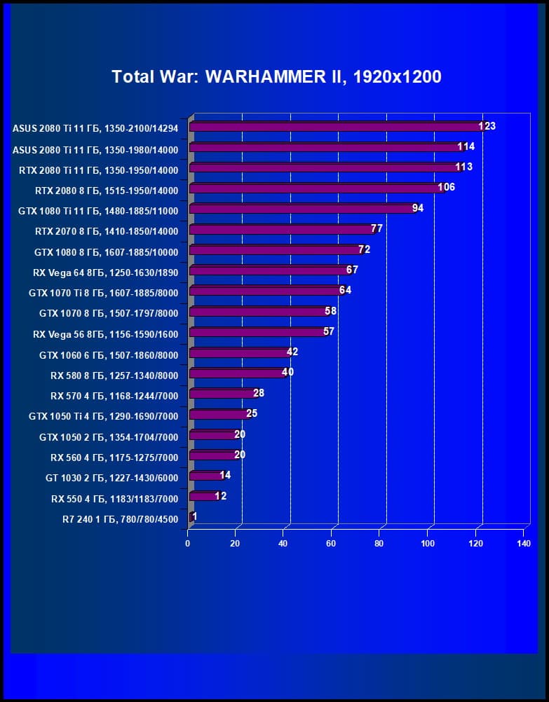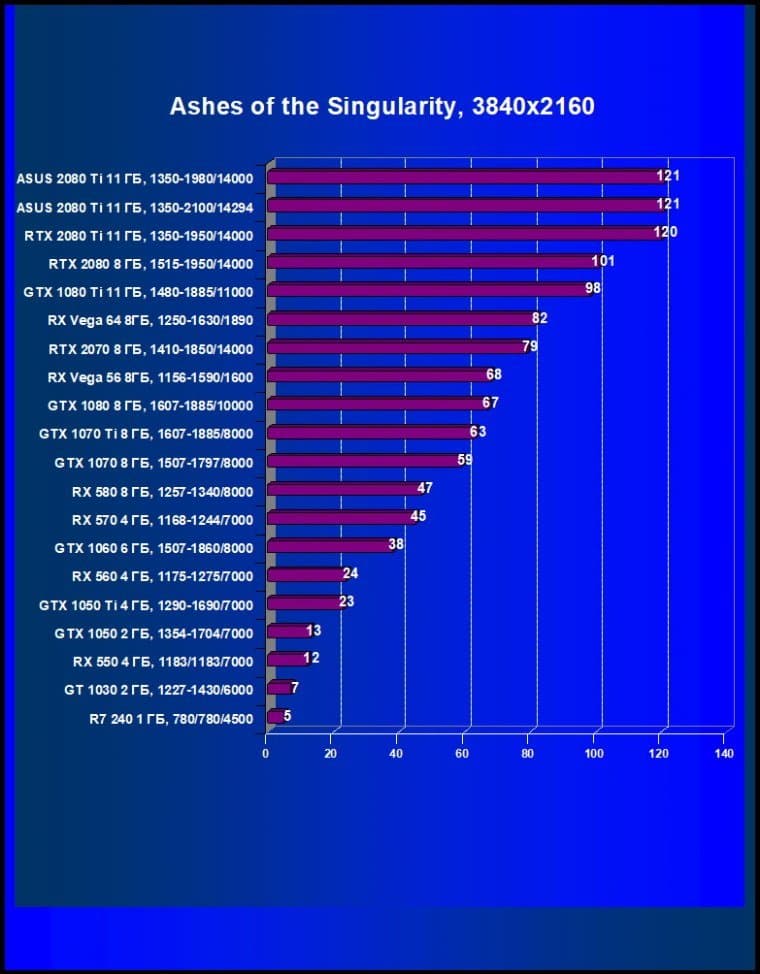 | 02 | Asus 2080 Ti 11 ГБ, 1350—1980/14000 (OC Mode) | 5570 | 593 | 94 000 |