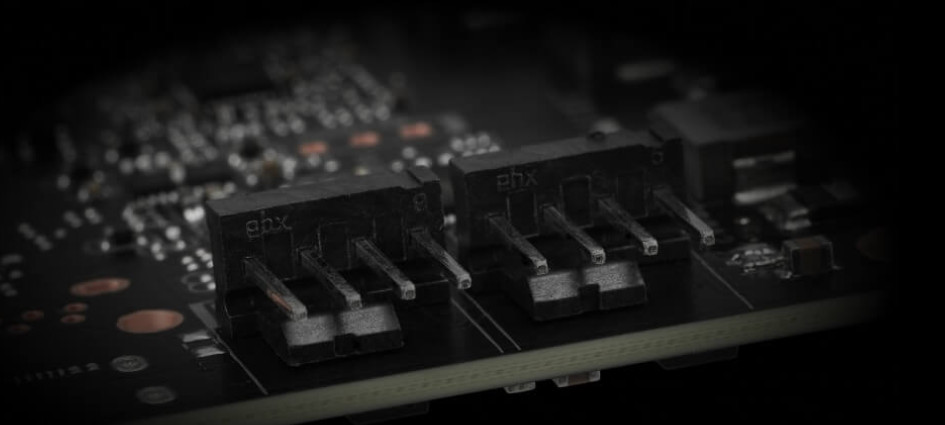 Как и у всей серии видеокарт ROG, у этой платы в хвостовой части имеются два коннектора