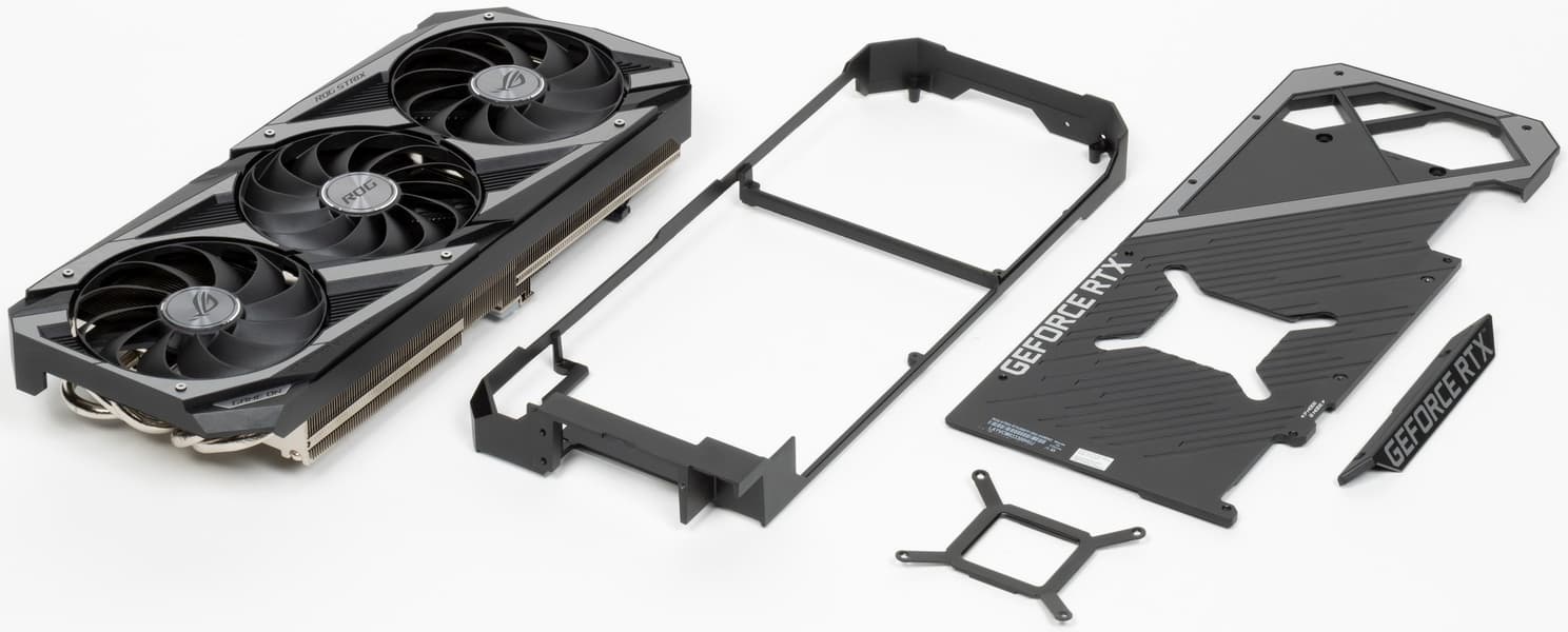 Как известно, дизайн карт Nvidia GeForce RTX 3060 Ti/3070/3080/3090 предусматривает компактную PCB и систему охлаждения, продувающую радиатор насквозь (при этом частично оставляющую нагретый воздух в объеме корпуса). Инженеры Asus лишь частично последовали этому решению. Дело в том, что инженеры Nvidia наряду с продувкой радиатора насквозь одним (правым) вентилятором реализовали также охлаждение закрытой части СО левым вентилятором с выносом нагретого воздуха за пределы корпуса ПК. Однако если у референс-карты мы видели именно наглухо закрытый кожух в левой части видеокарты, то у всех партнеров кожухи открытые, поэтому полного удаления тепла за пределы корпуса не получается. А значит, надо иметь хорошо продуваемый корпус.