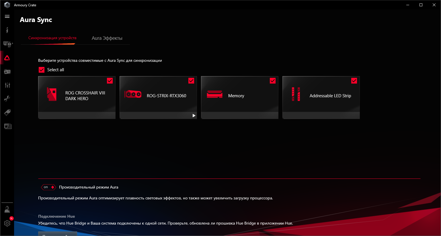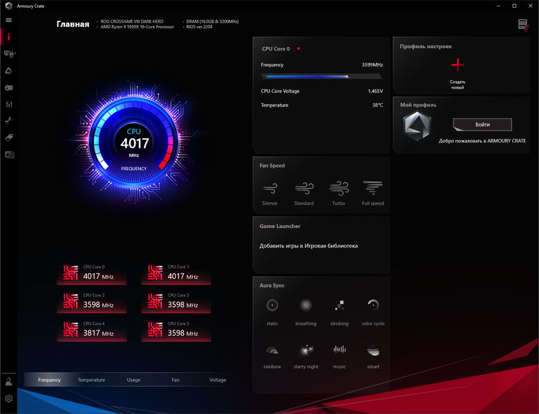 Управление подсветкой традиционно выполнено с помощью фирменной программы Asus — Armoury Crate.
