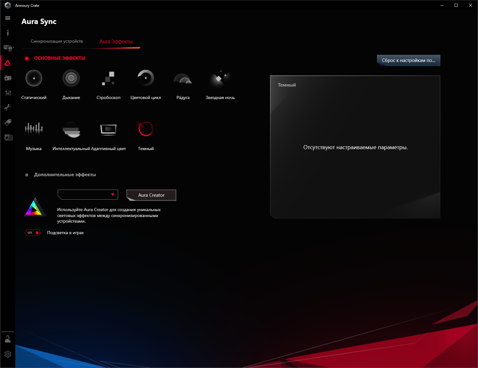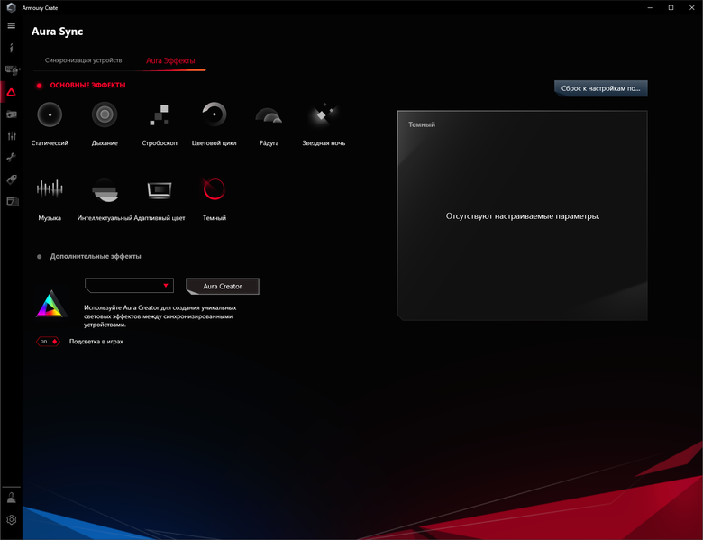 Выбор режимов не очень широк, однако имеется программа Aura Creator, которая также распространяется бесплатно, и с ее помощью можно создать собственные сценарии подсветки.