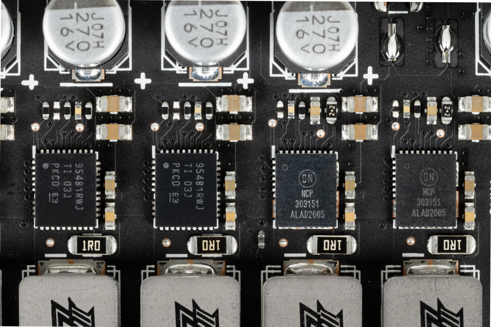 А в схеме преобразования питания микросхем памяти применены знакомые сборки NCP303151 (On Semiconductor), рассчитанные на максимальный ток 50 А.