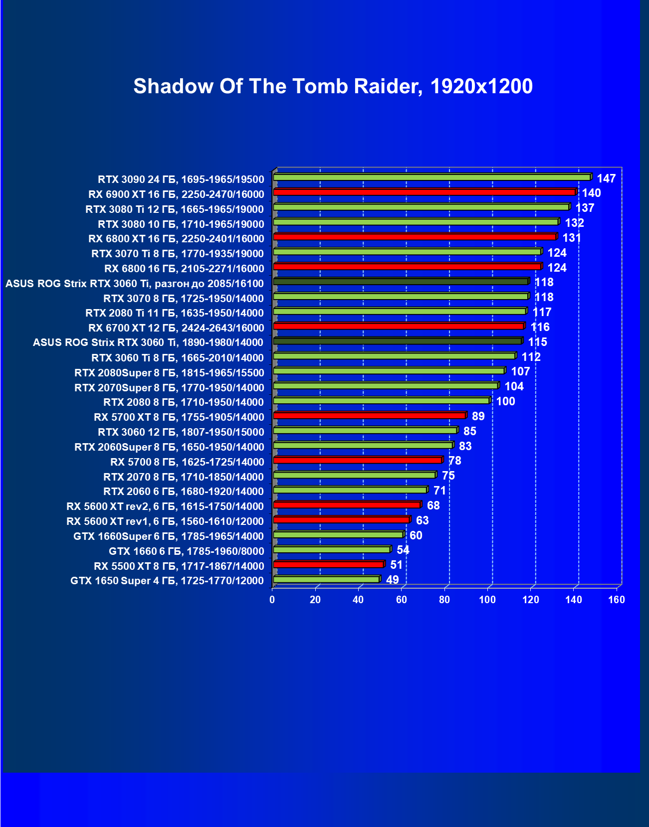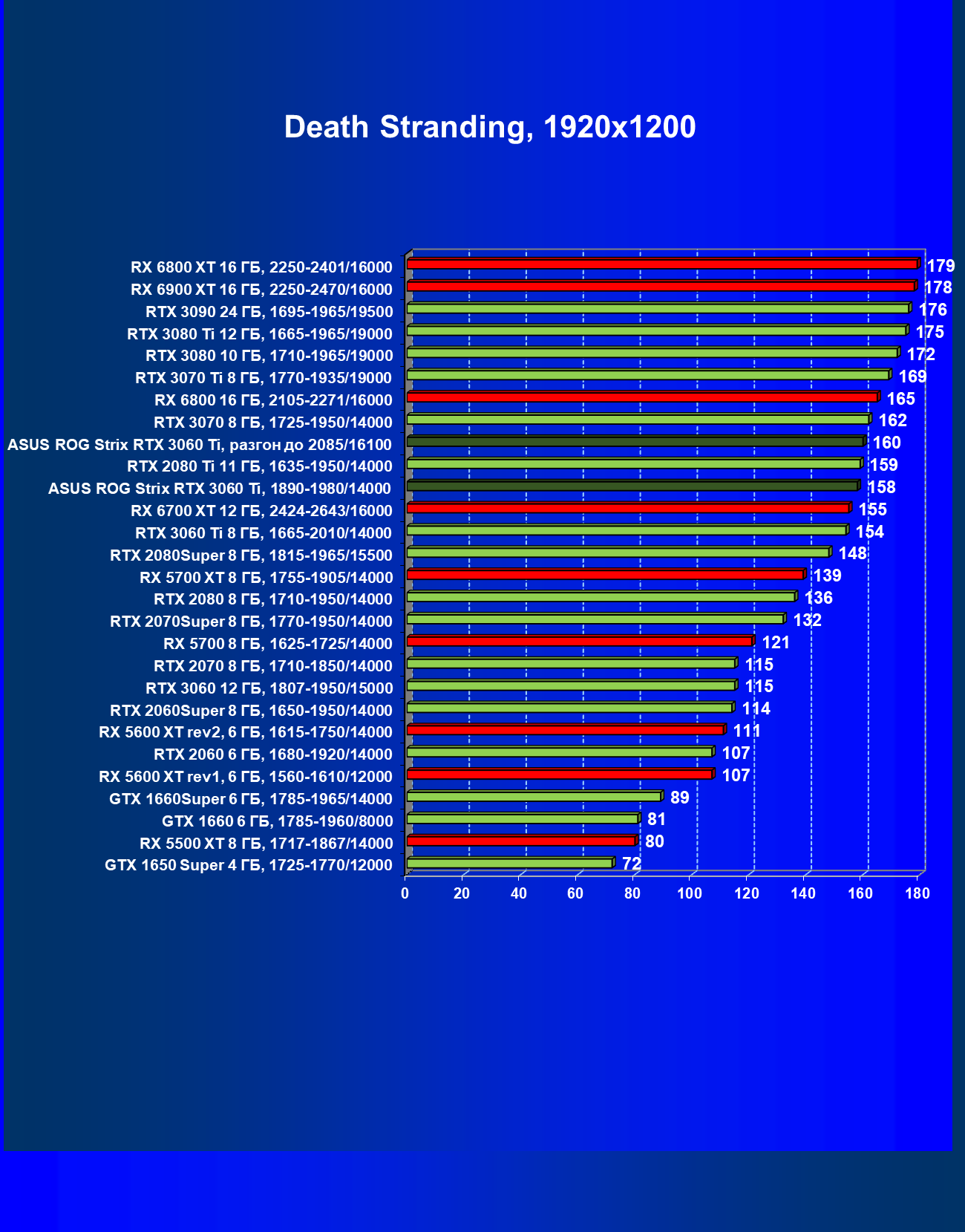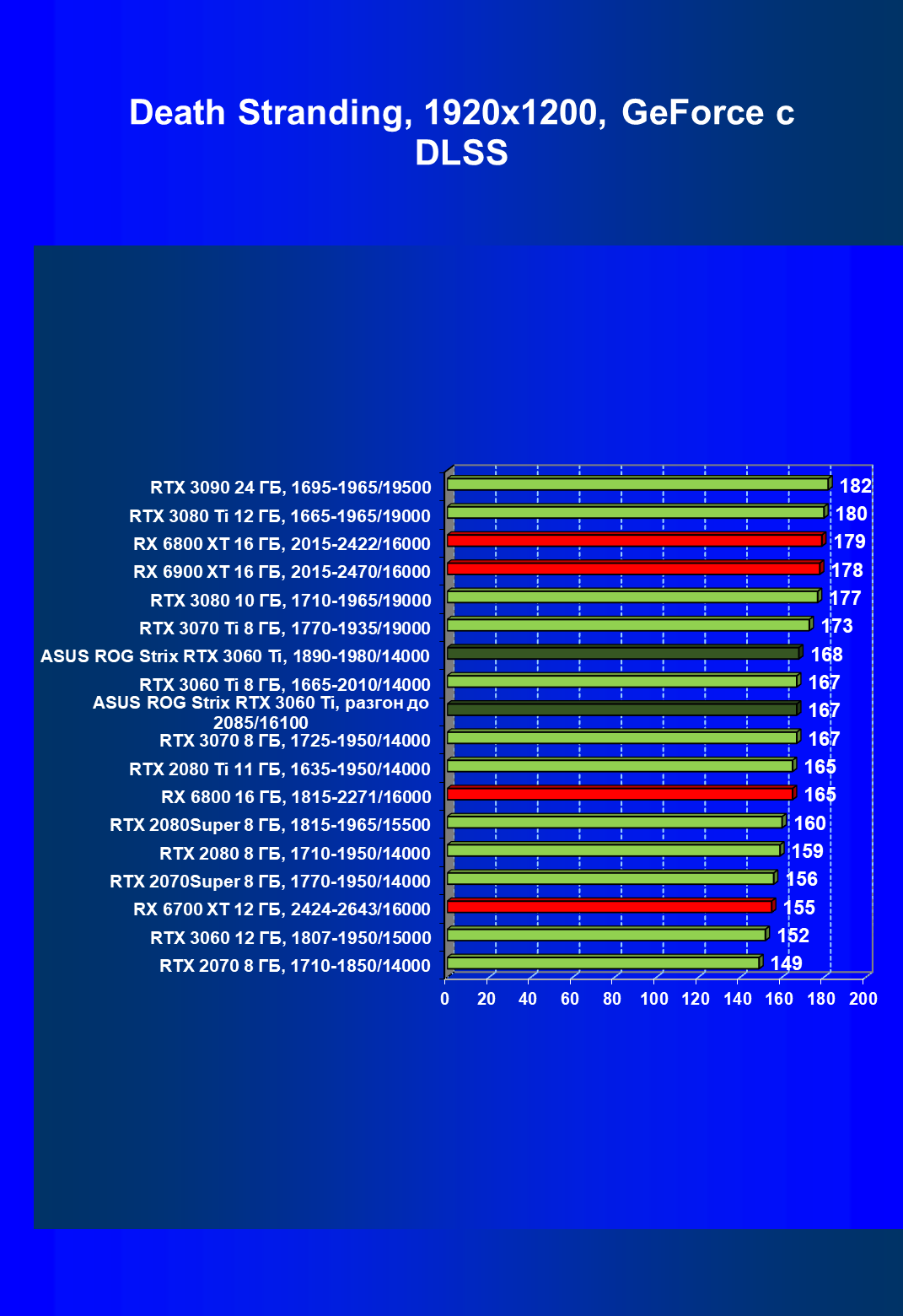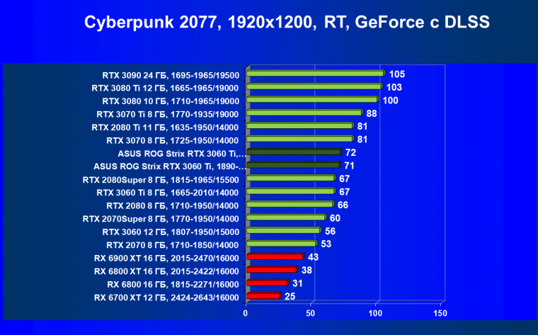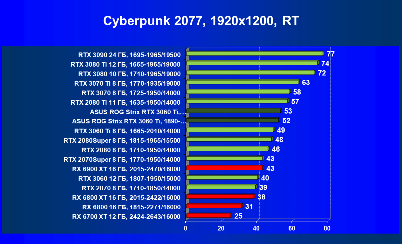 | 08 | Asus ROG Strix RTX 3060 Ti, 1890—1980/14000 | 150 | 20 | 74 000 |