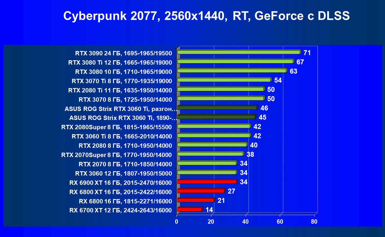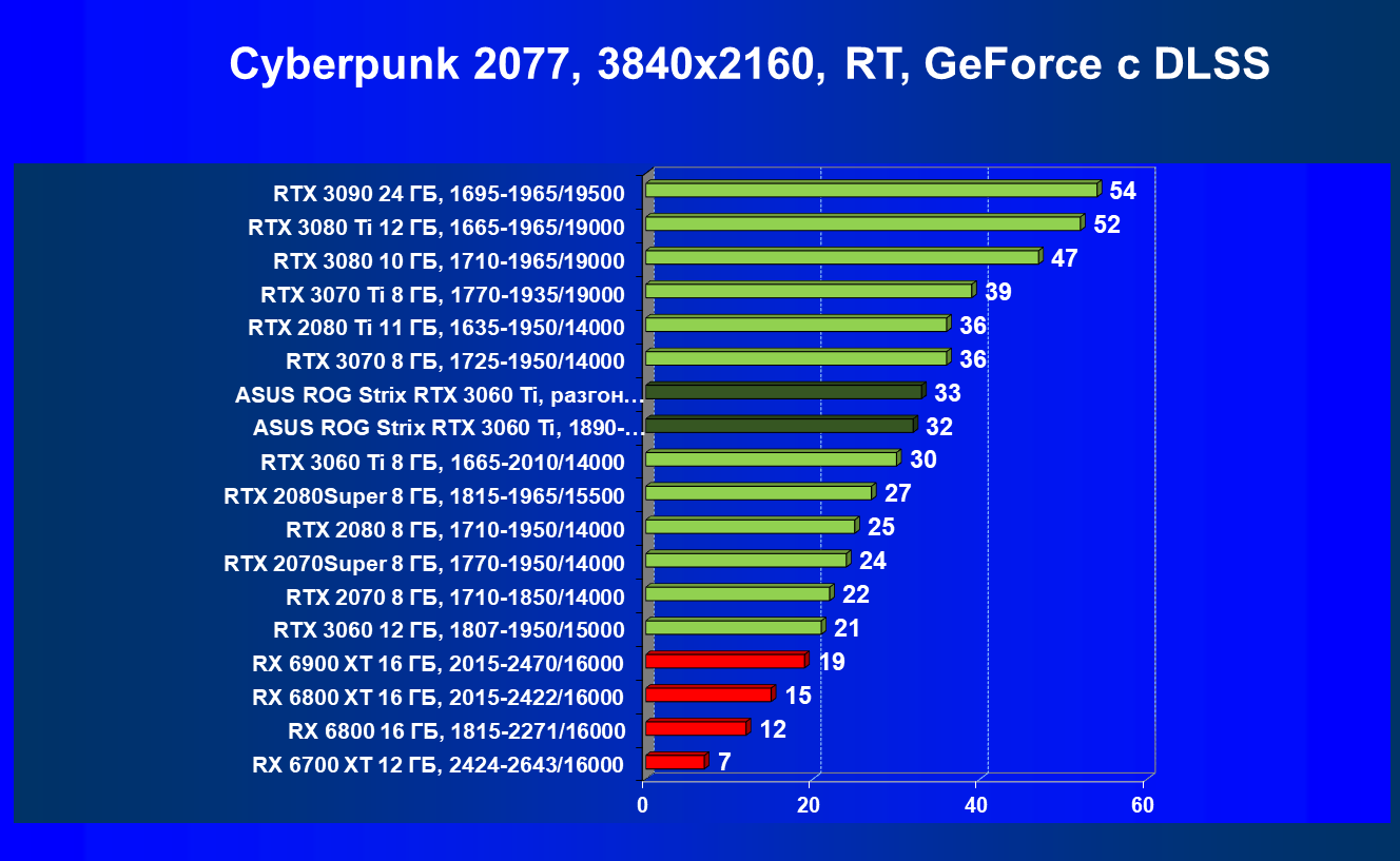| 12 | Asus ROG Strix RTX 3060 Ti, 1890—1980/14000 | 390 | 53 | 74 000 |