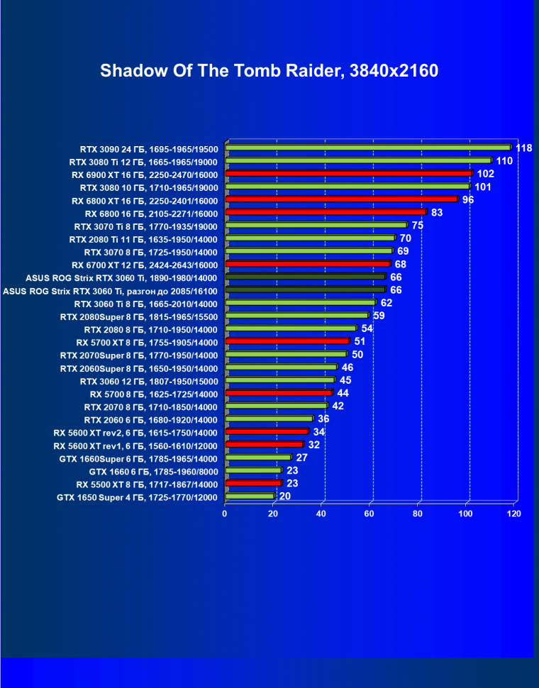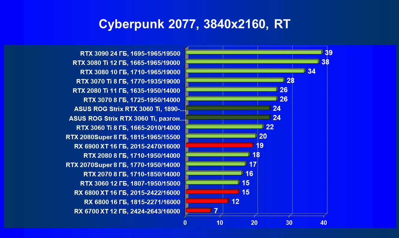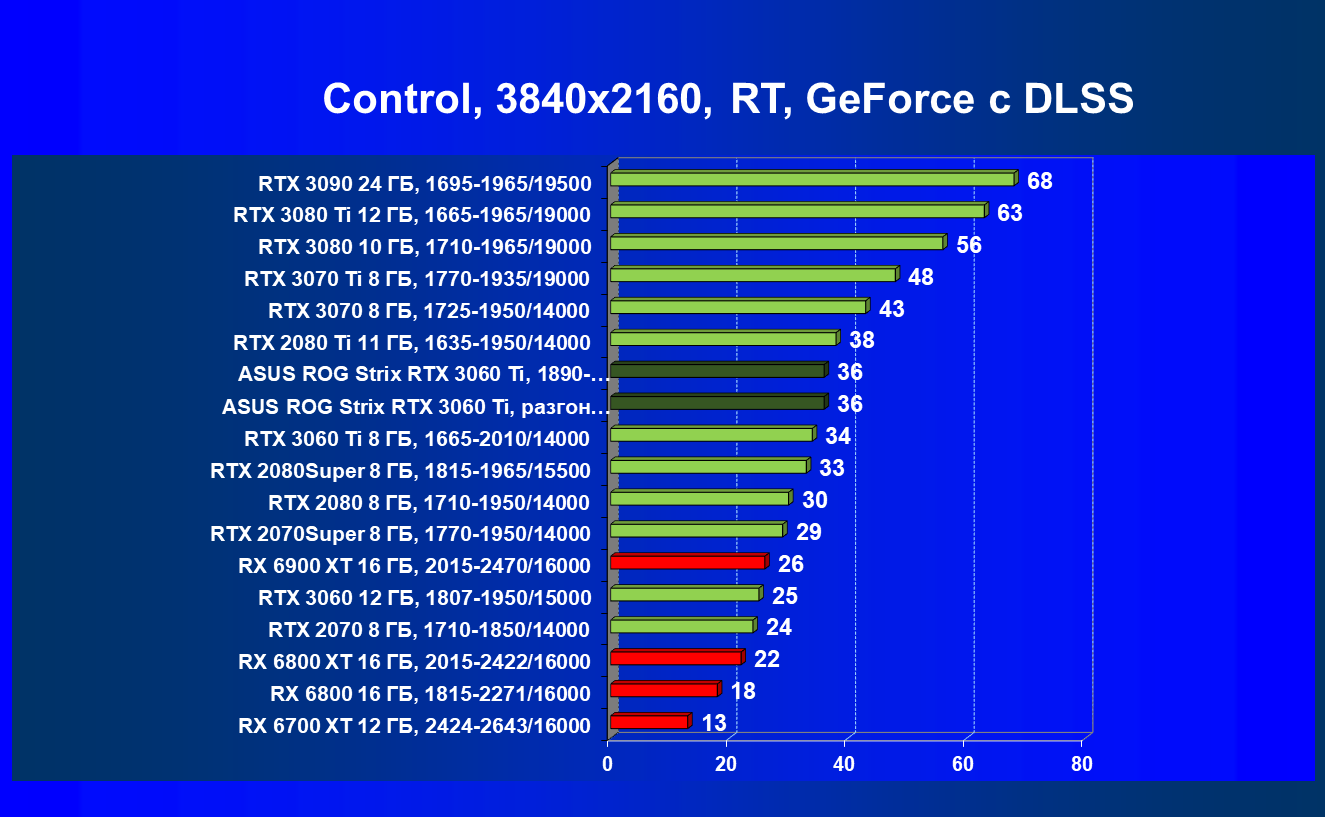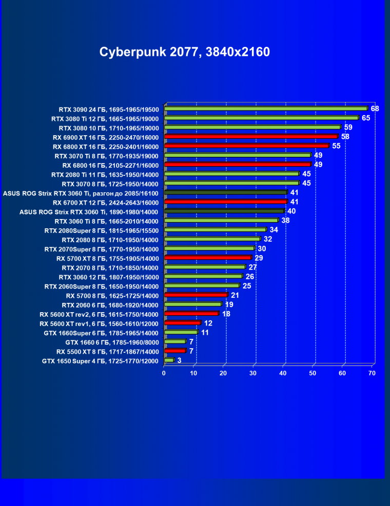 | 03 | Asus ROG Strix RTX 3060 Ti, разгон до 2085/16100 | 20 | 151 | 74 000 |
