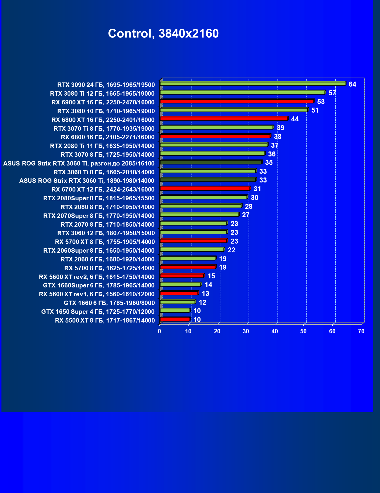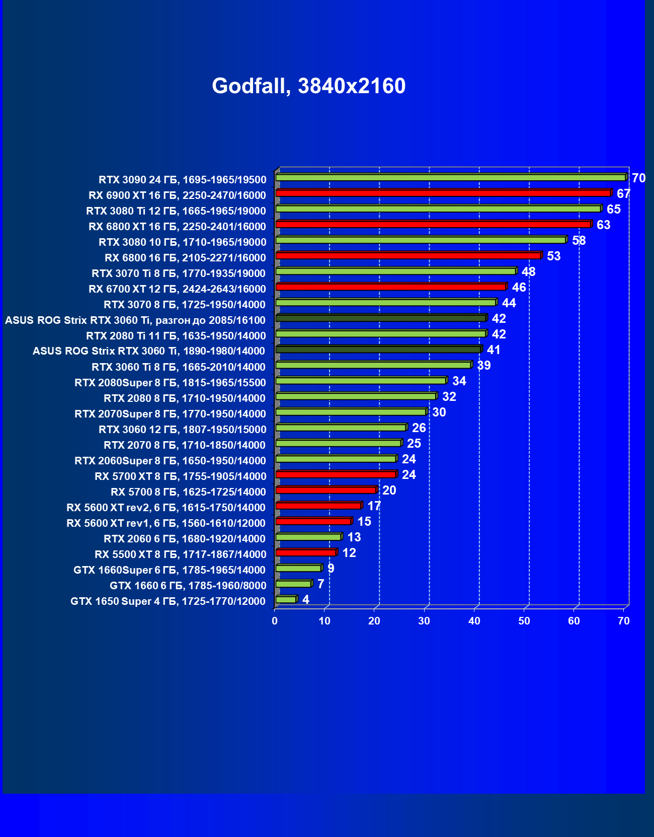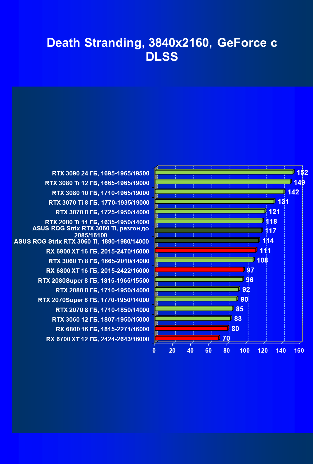| 03 | Asus ROG Strix RTX 3060 Ti, разгон до 2085/16100 | 20 | 151 | 74 000 |