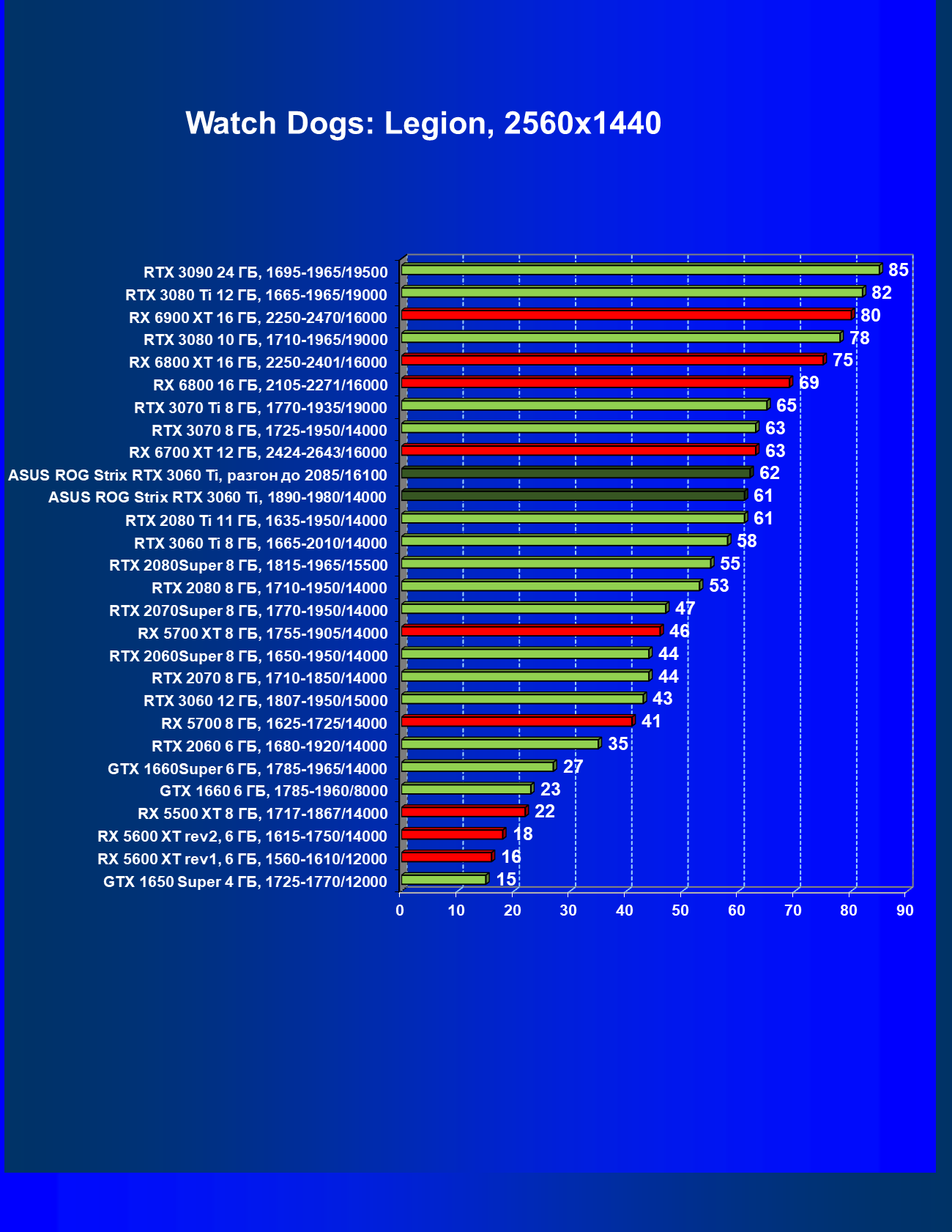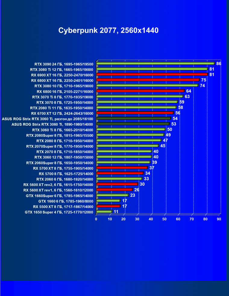 | 11 | Asus ROG Strix RTX 3060 Ti, разгон до 2085/16100 | 400 | 54 | 74 000 |