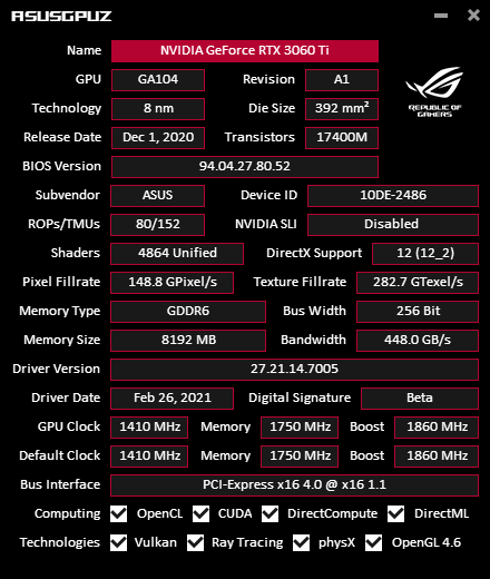 | GPU | GeForce RTX 3060 Ti (GA104) | |
