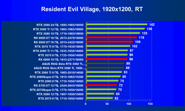 Здесь картина поменялась из-за того, что видеокарты AMD последнего поколения являются аутсайдерами вследствие чрезмерного падения производительности в играх с трассировкой лучей.
