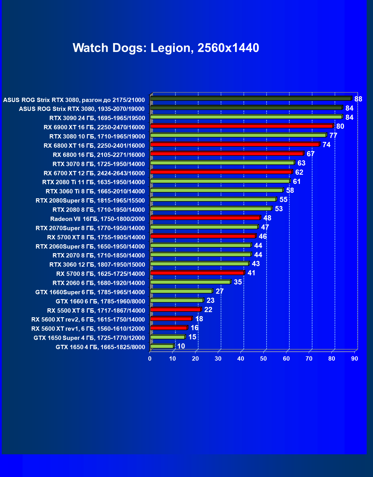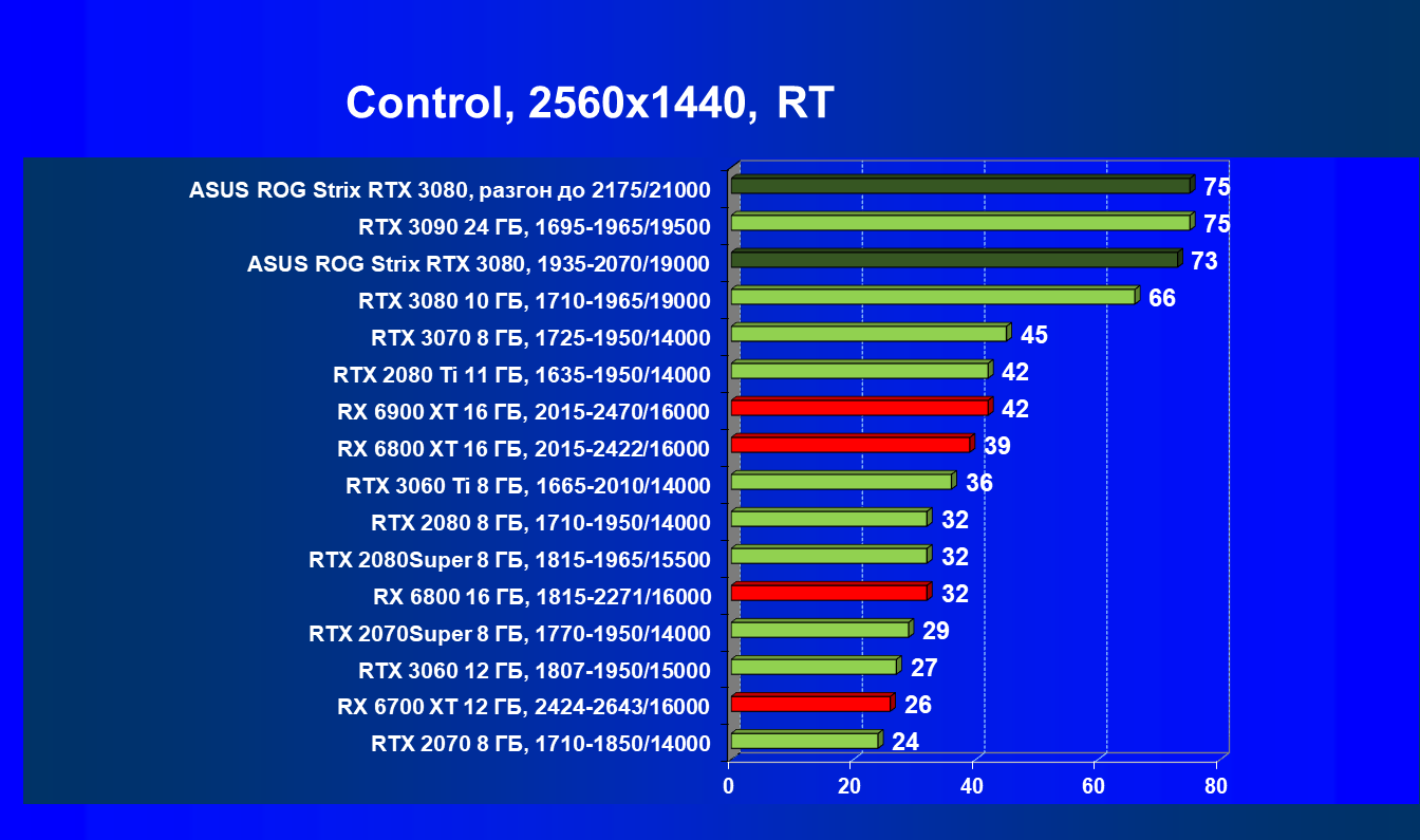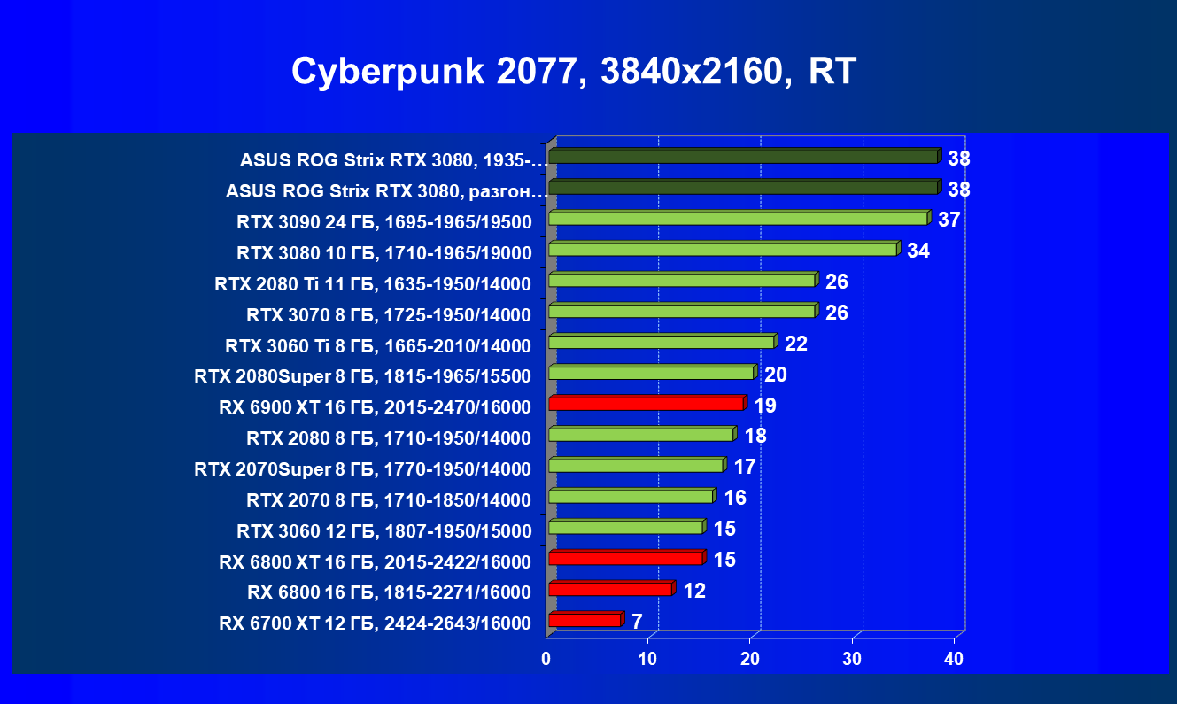 | 11 | Asus ROG Strix RTX 3080, 1935—2070/19000 | 67 | 1731 | 259 000 |