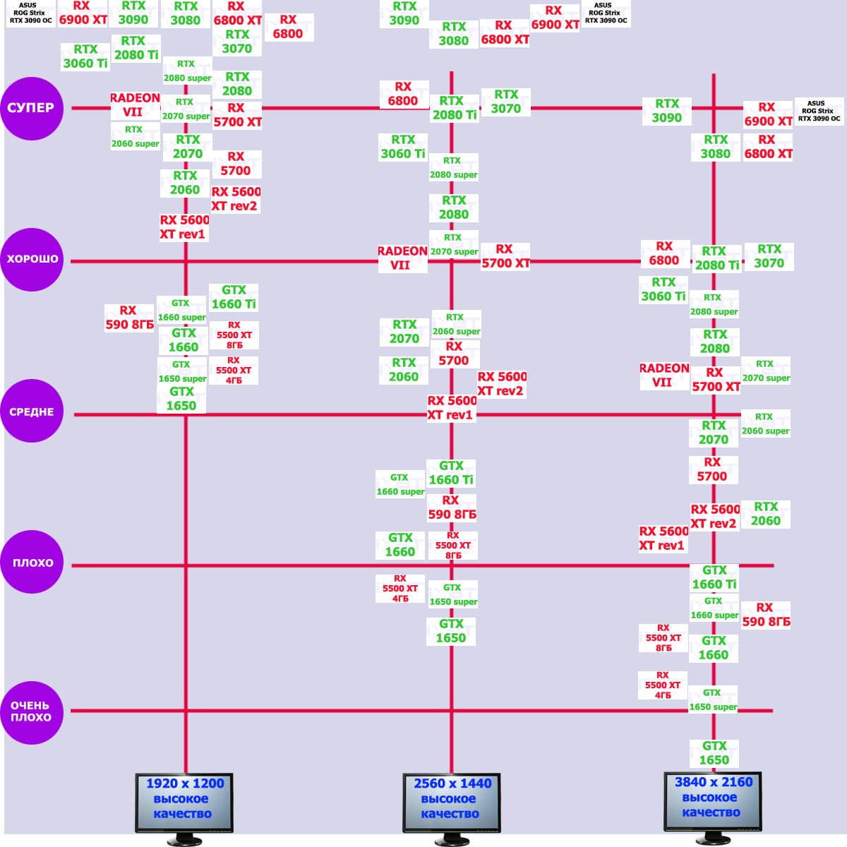 | 05 | RX 6900 XT 16 ГБ, 2015—2470/16000 | 14 | 175 | 125 000 |