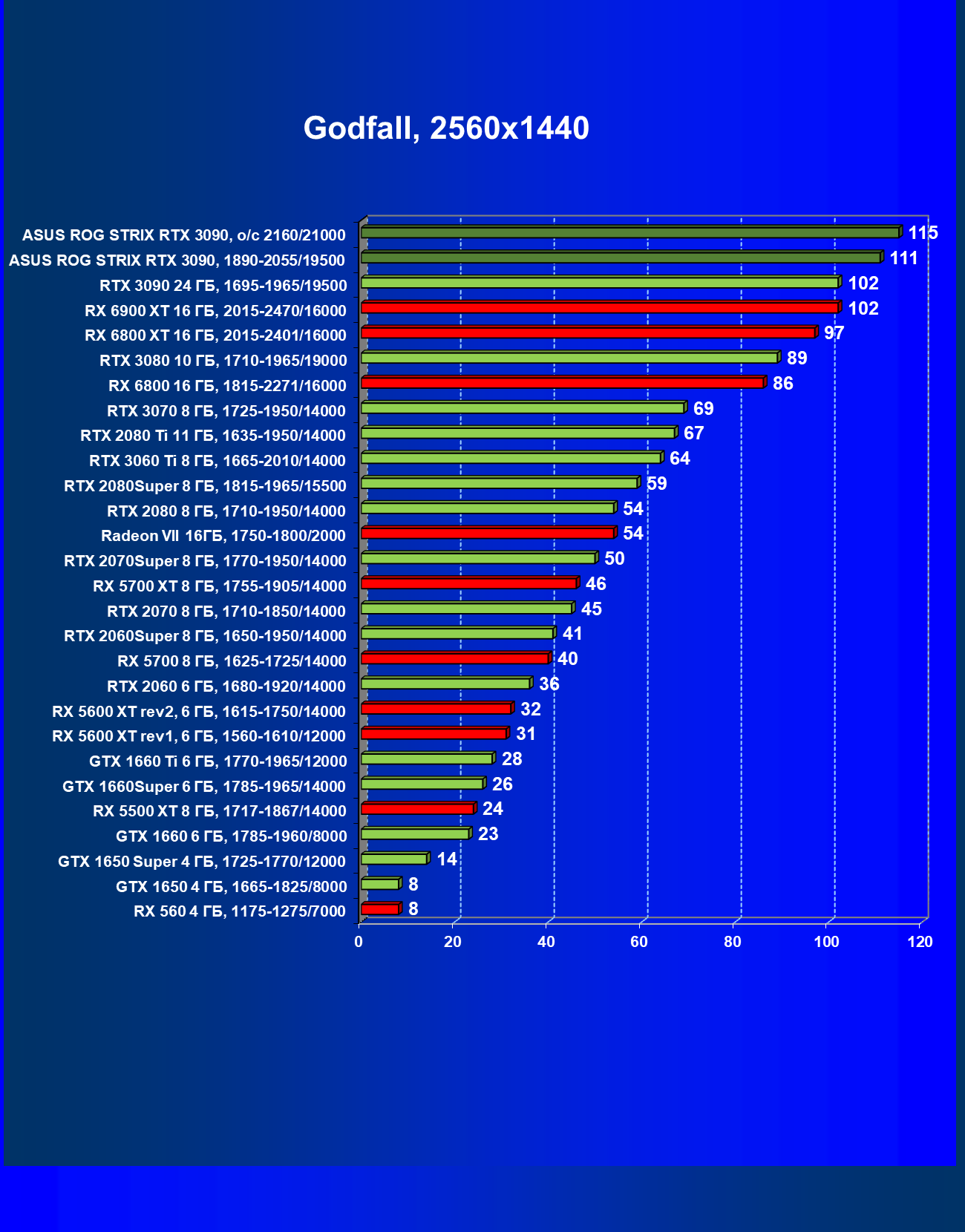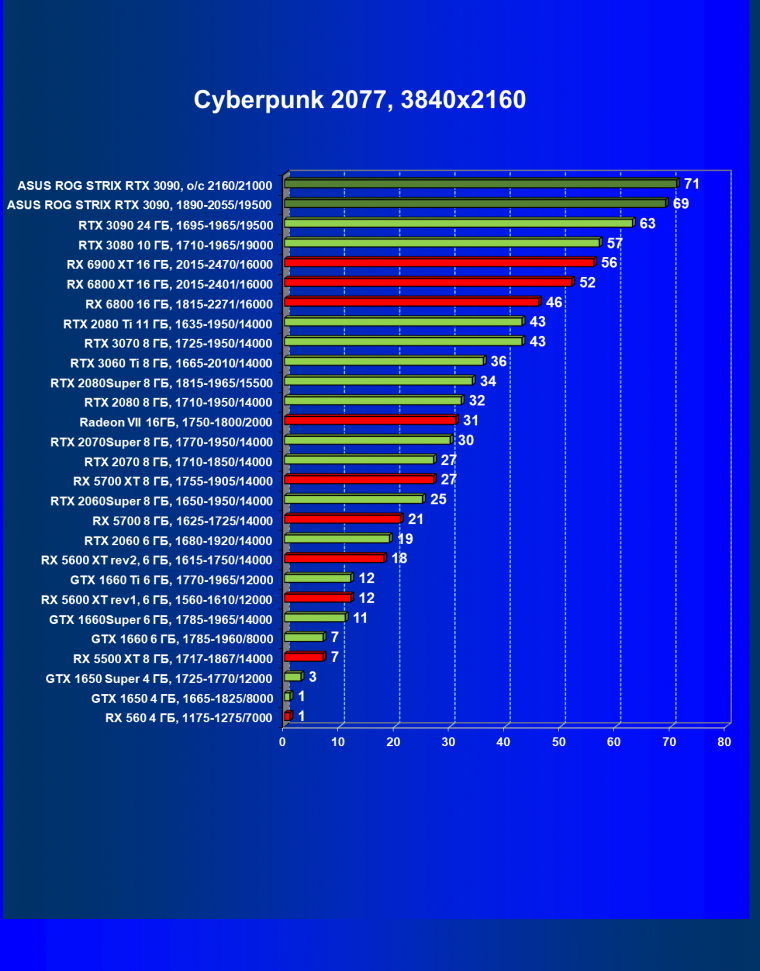 | 12 | Asus ROG Strix RTX 3090, 1890—2055/19500 | 13 | 318 | 250 000 |