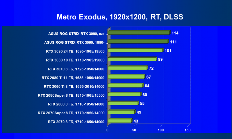 | 12 | Asus ROG Strix RTX 3090, 1890—2055/19500 | 135 | 3368 | 250 000 |